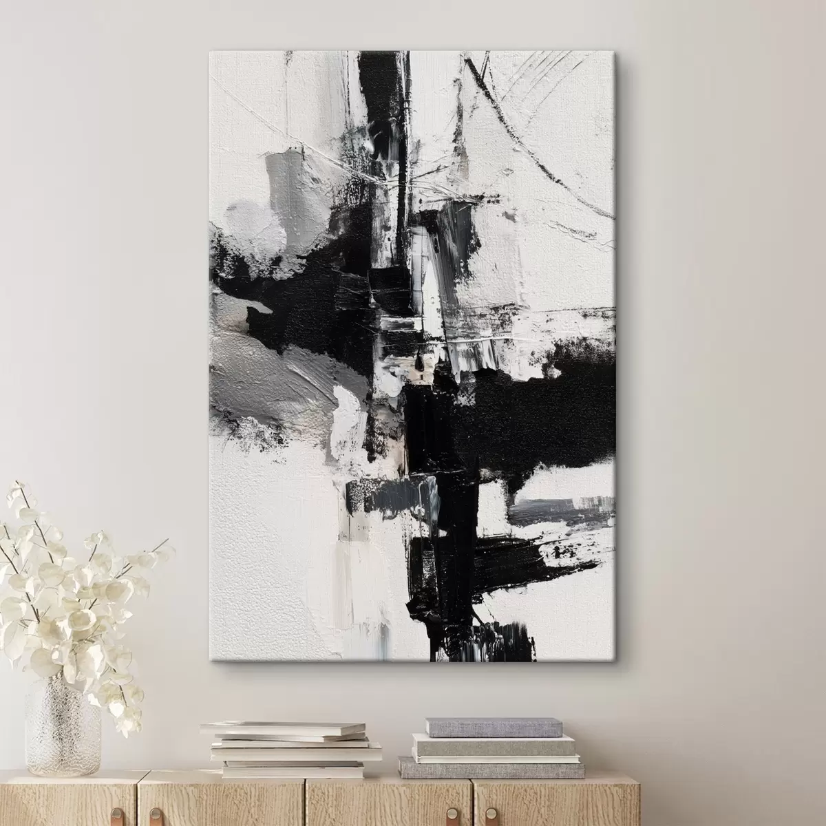 murales Ilustración texturizada con pinceladas contrastantes en negro y gris al estilo de la pintura al óleo. s47091