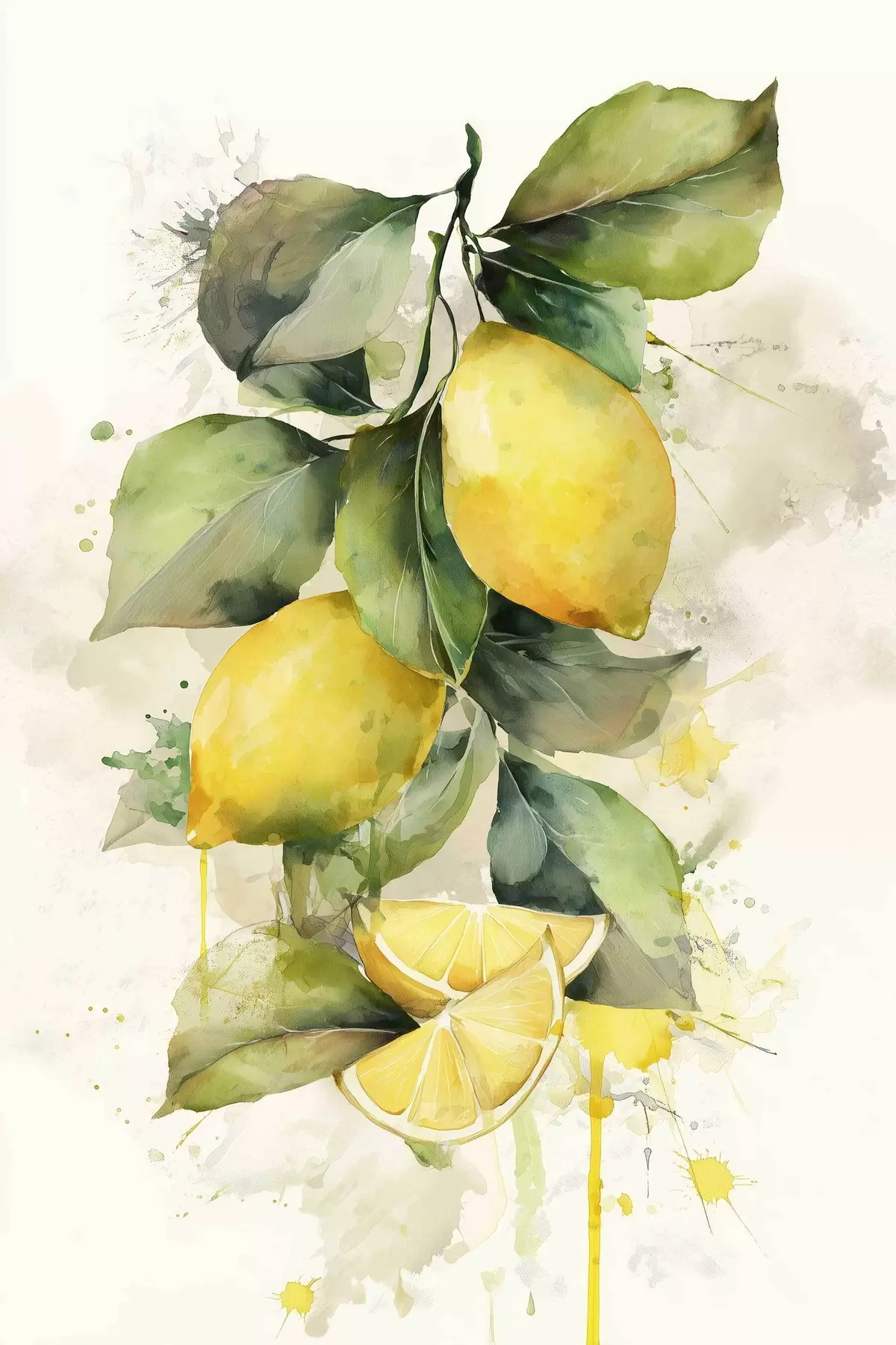 murales rama con limones en estilo acuarela s47124