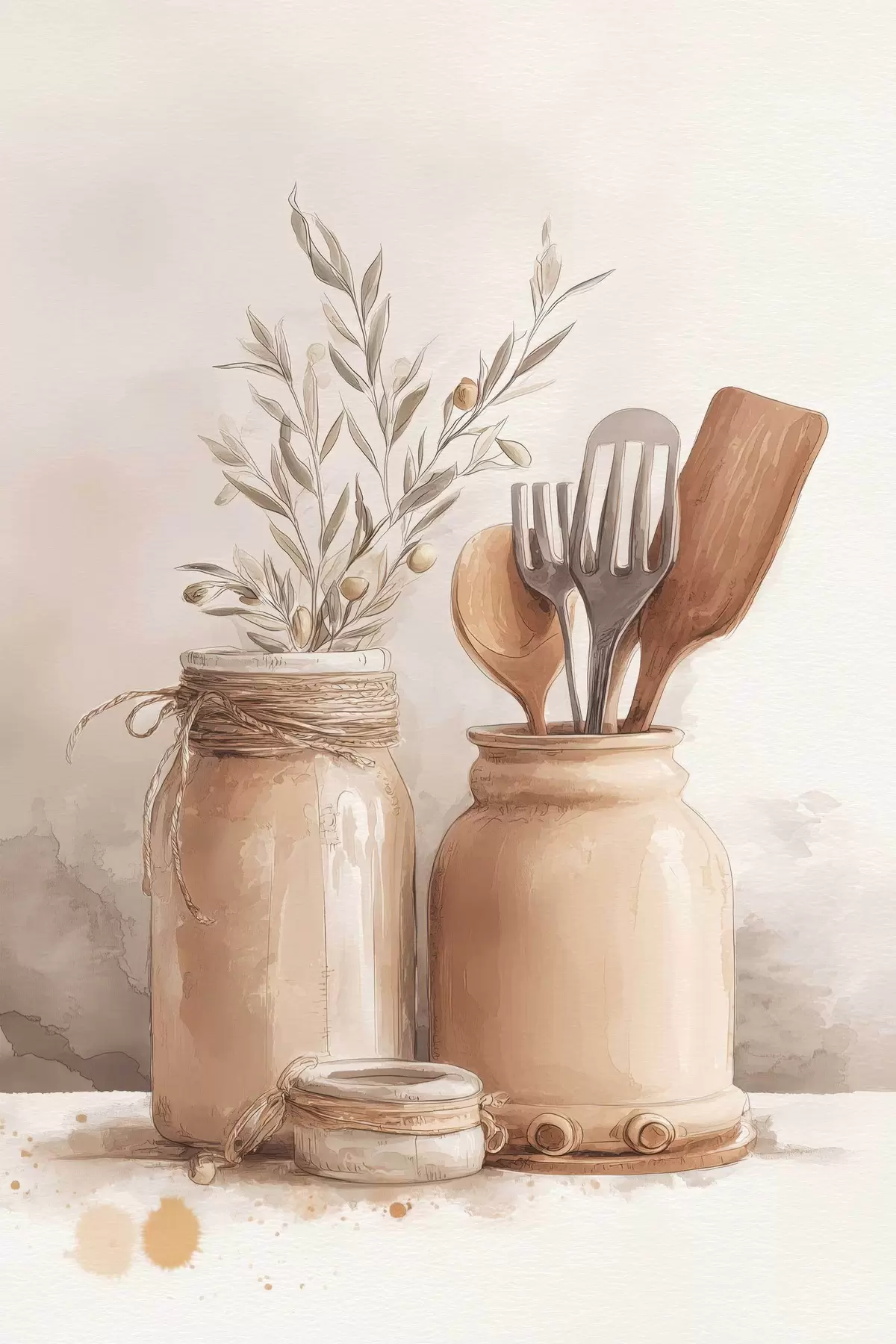 murales Naturaleza muerta en la cocina en estilo acuarela s47125