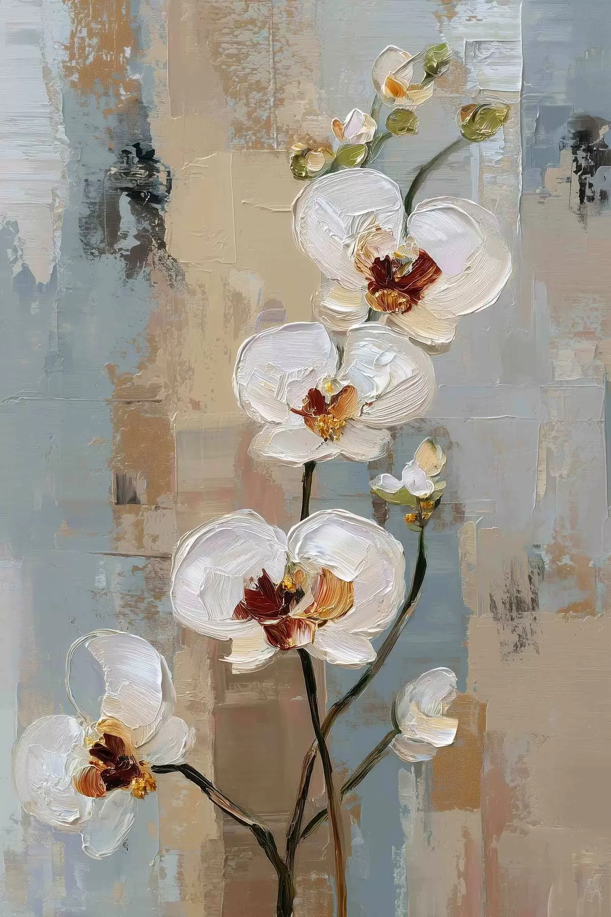 murales Flores de orquídea blanca al estilo de la pintura al óleo. s47131