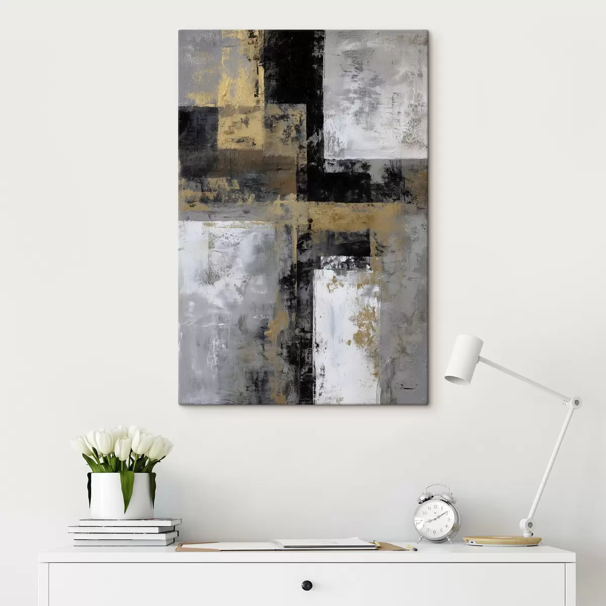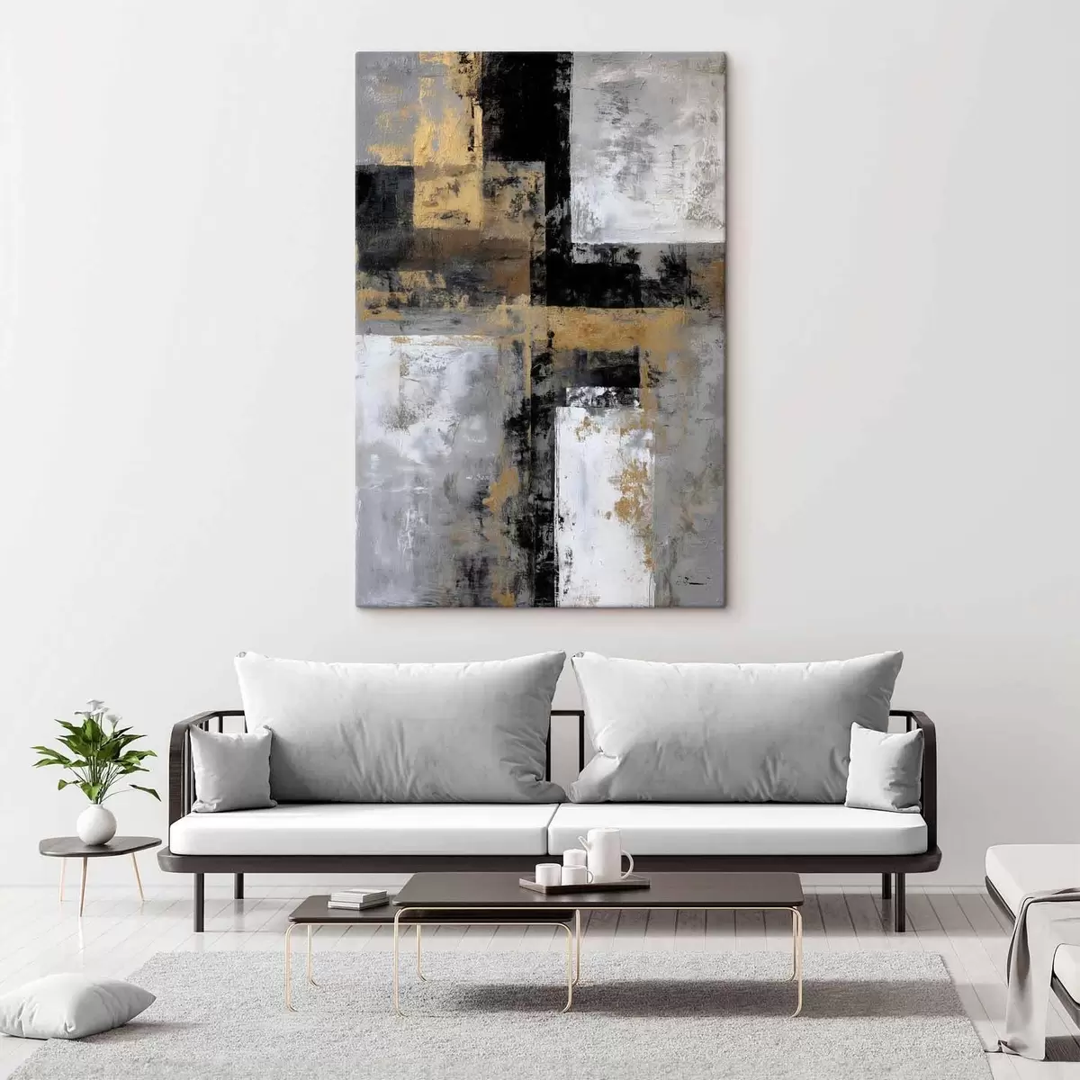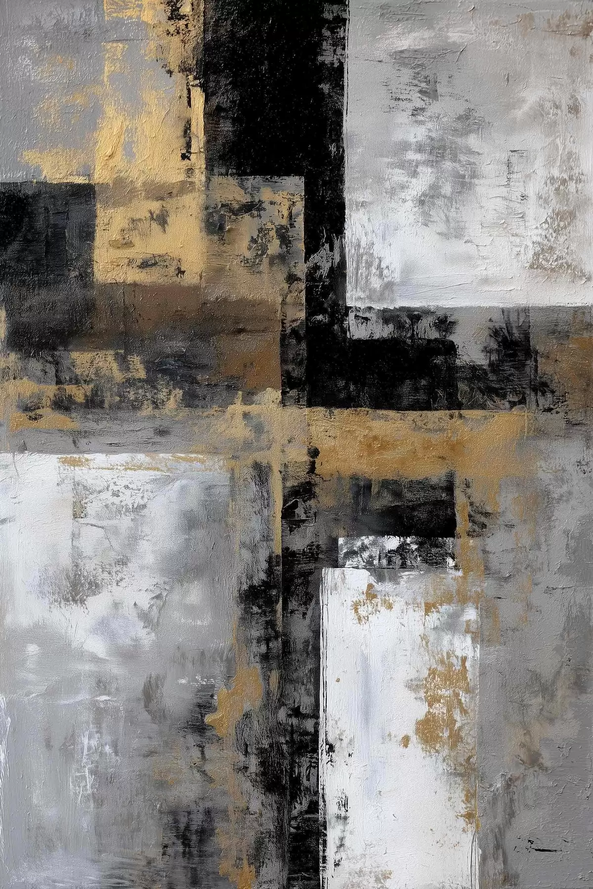 murales abstracción textural contemporánea en tonos negros, grises y blancos s47139