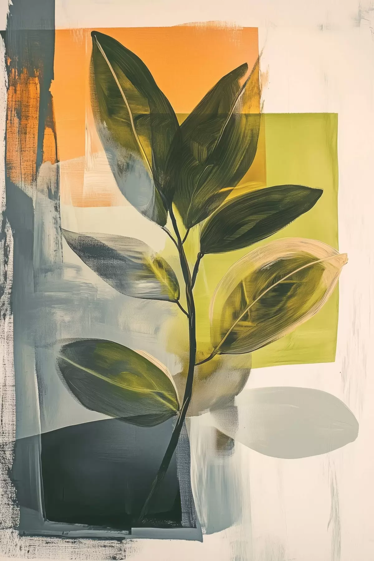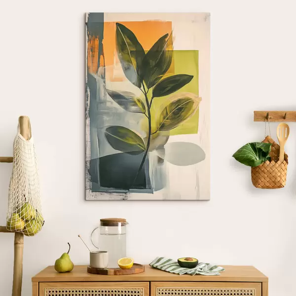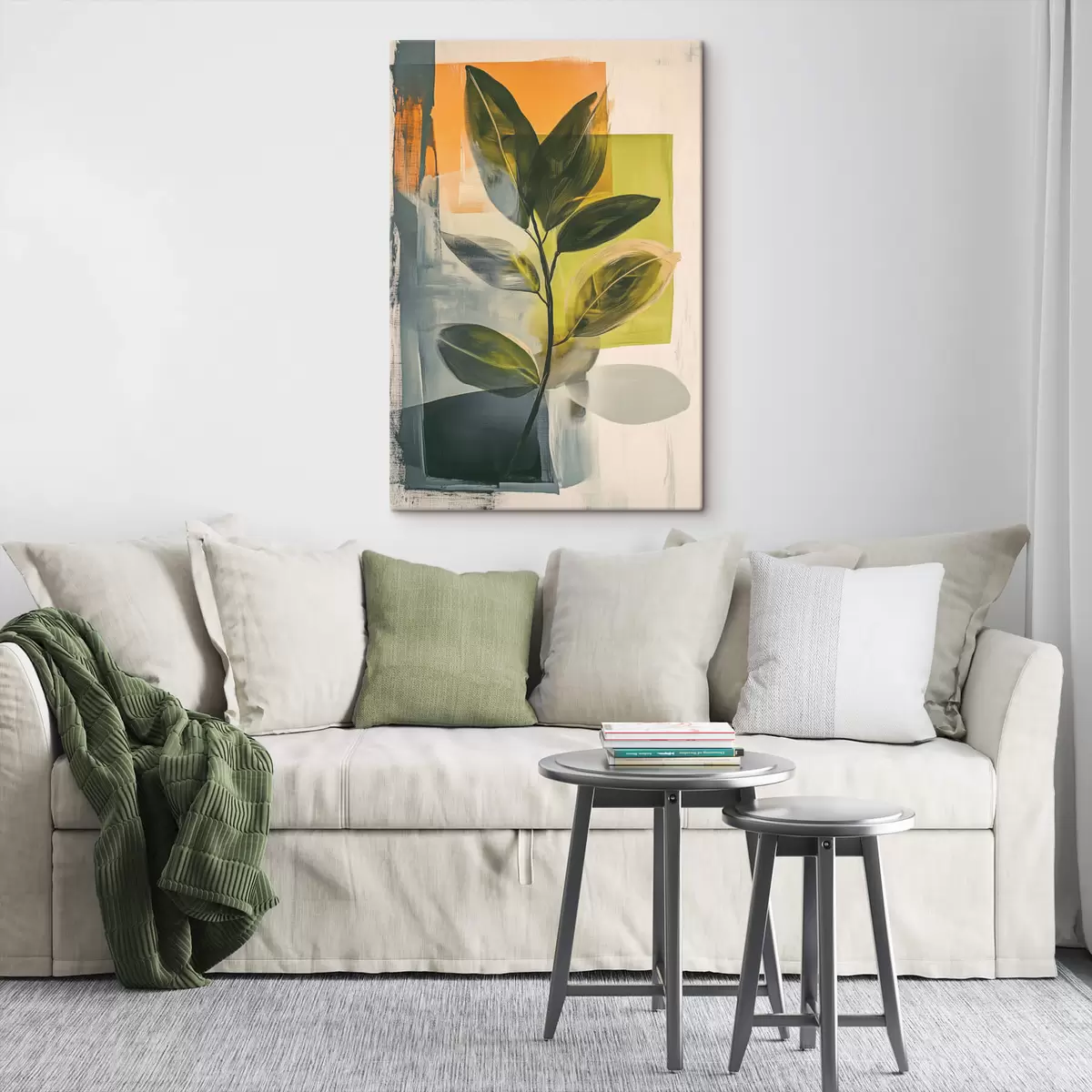 murales Una rama con hojas sobre un fondo abstracto. s47249
