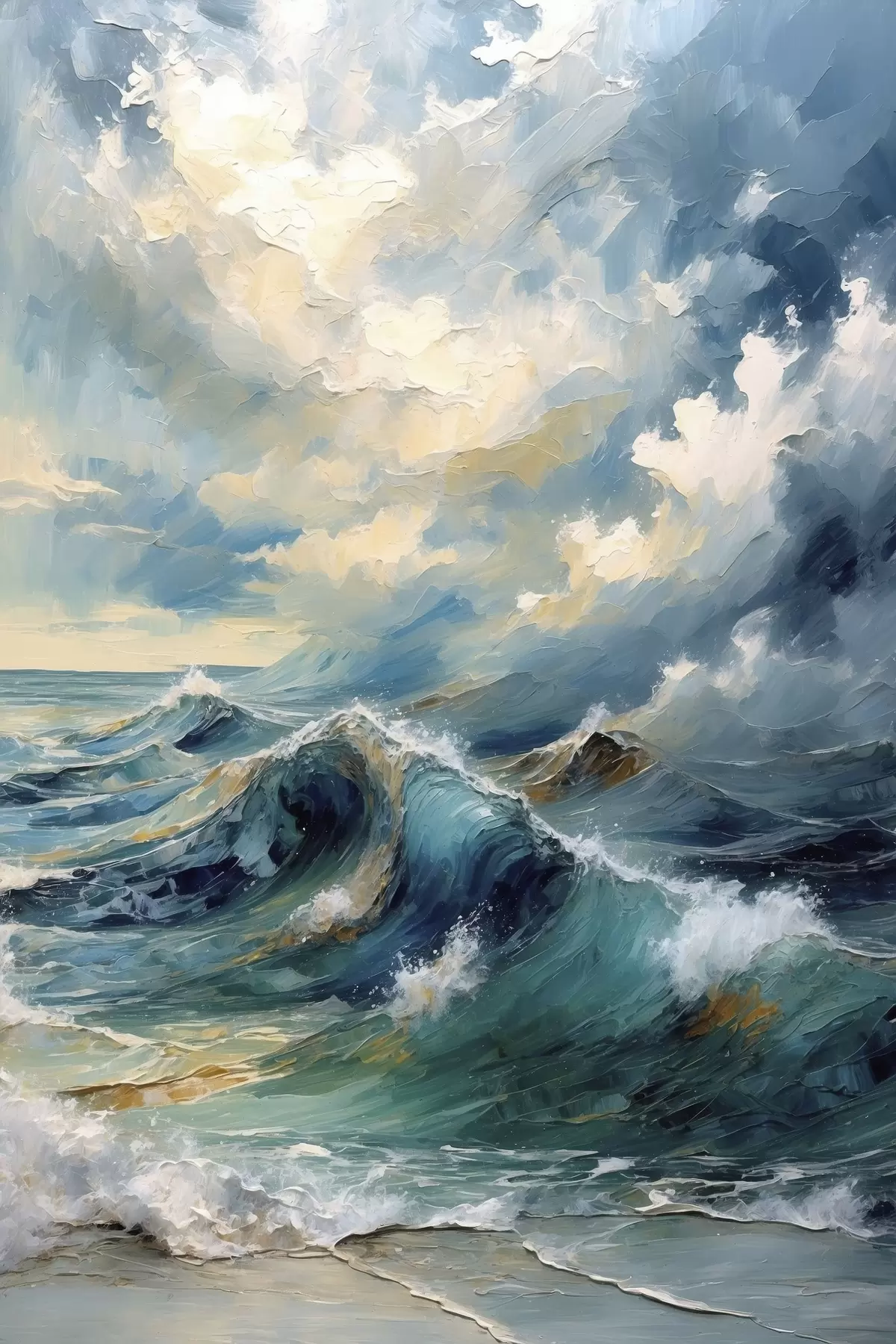 murales Olas del mar bajo un cielo nublado y luminoso s47275