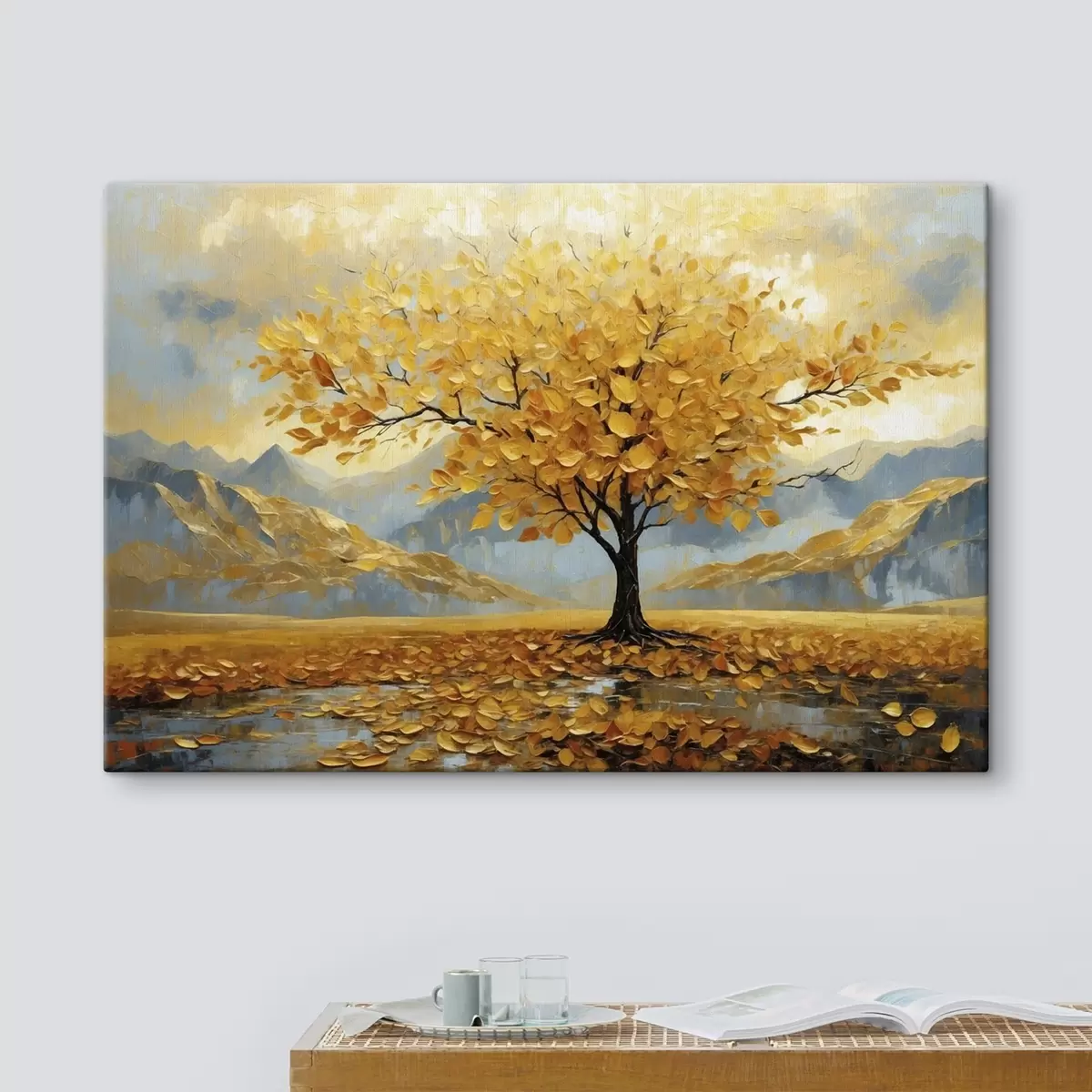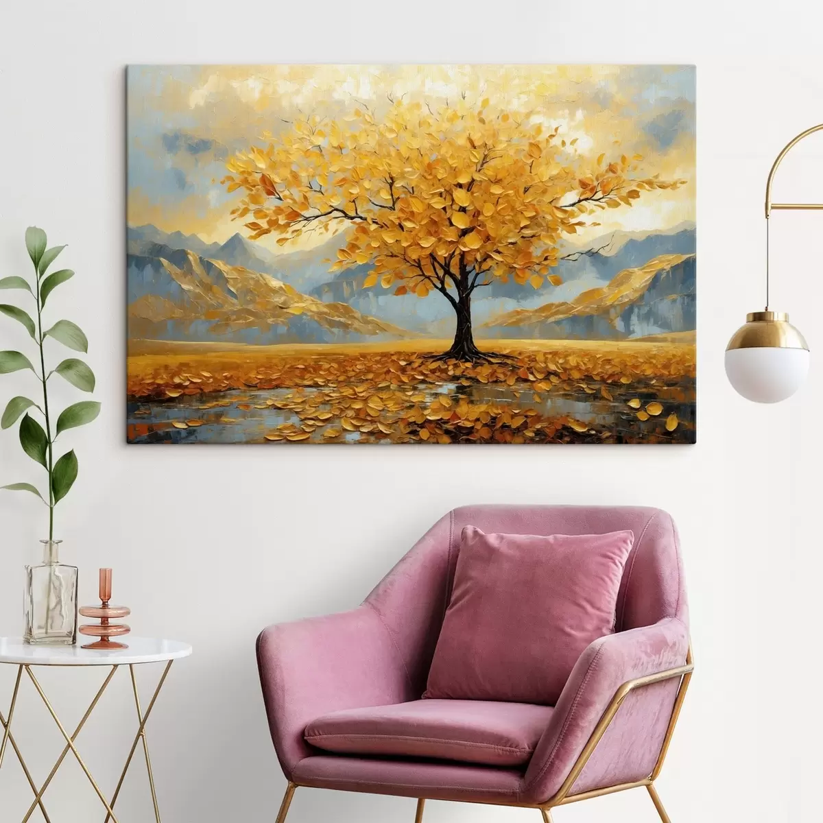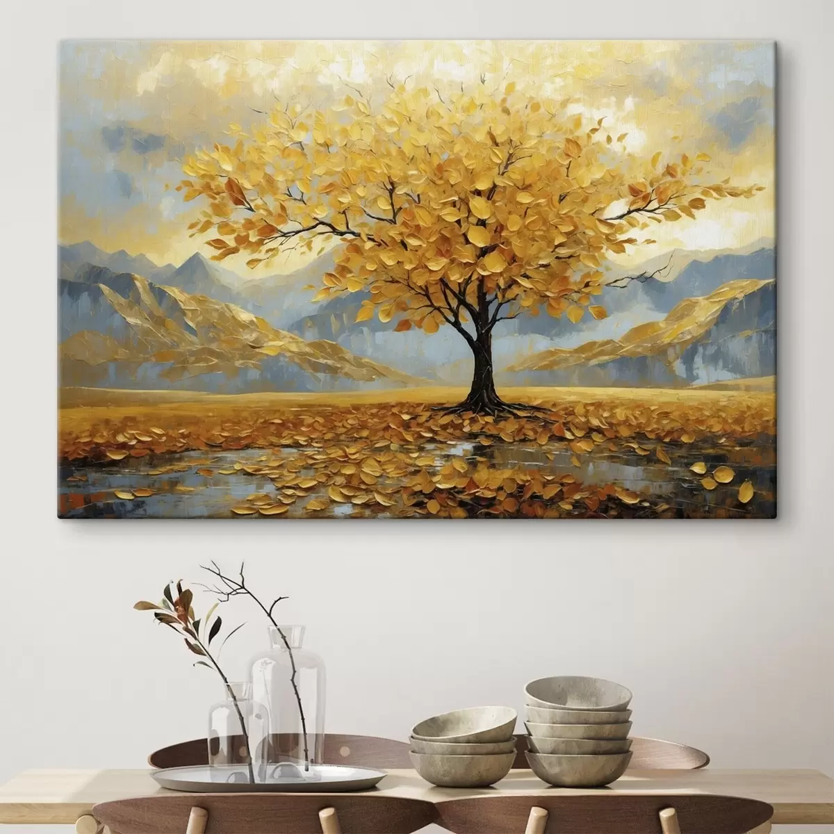 murales Árbol con hojas amarillas en un paisaje montañoso s47285