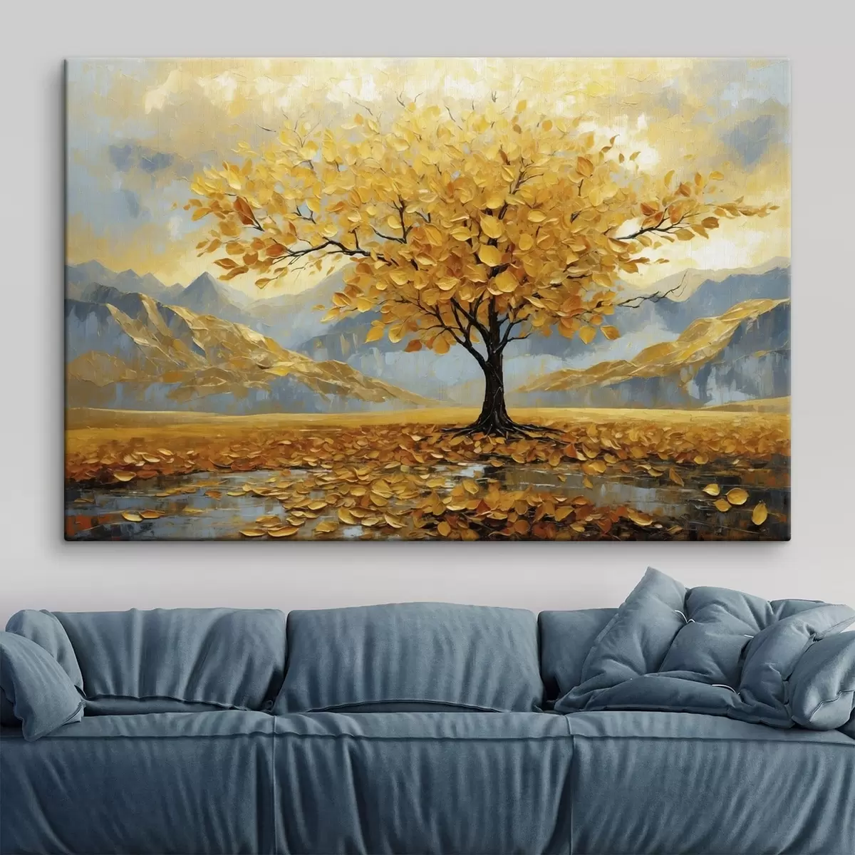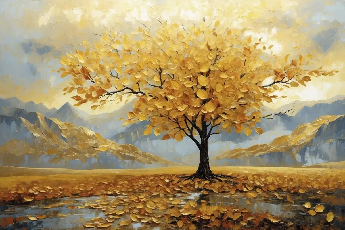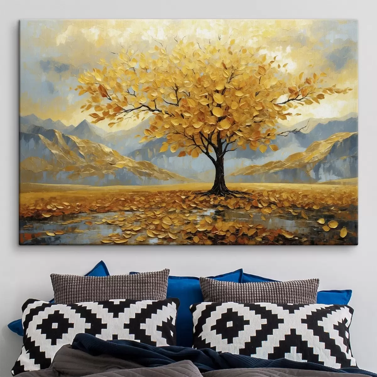 murales Árbol con hojas amarillas en un paisaje montañoso s47285