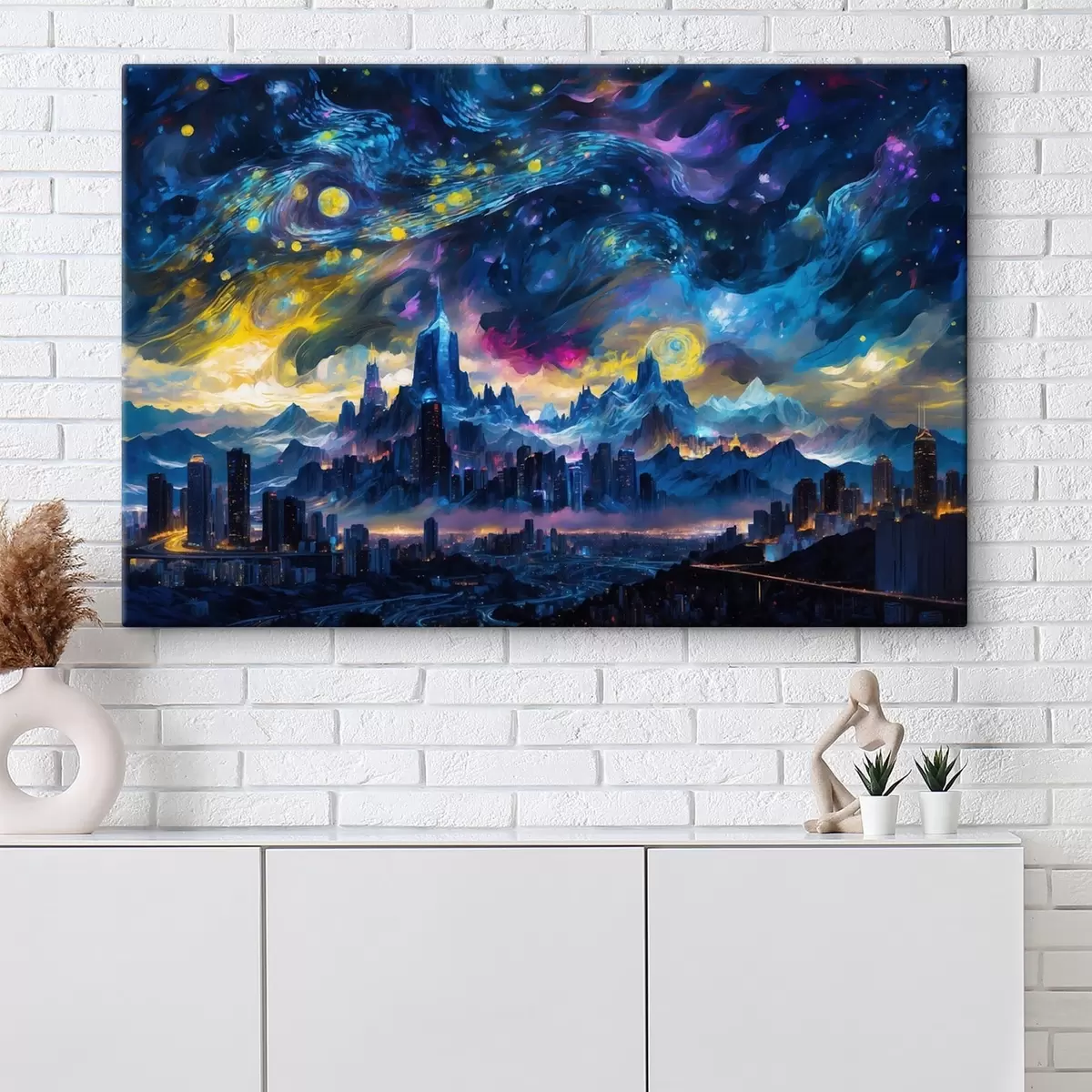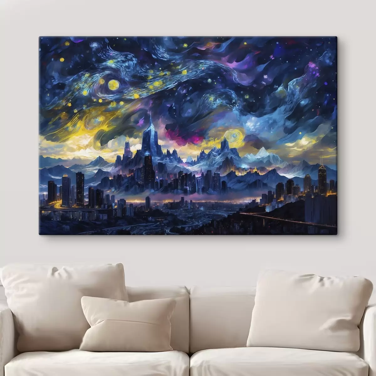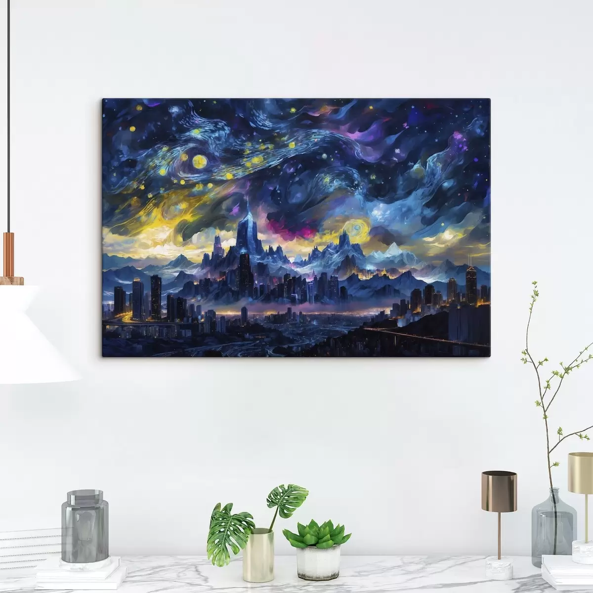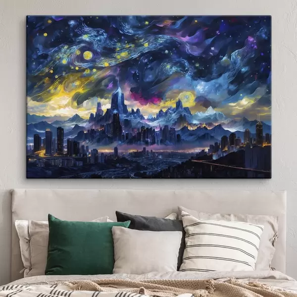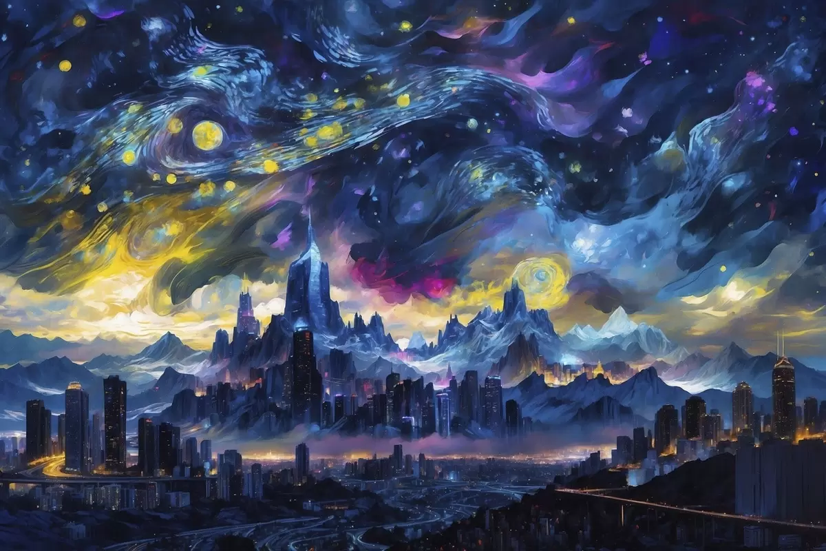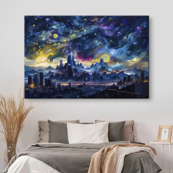 murales Ciudad fantástica bajo un cielo nocturno resplandeciente s47288