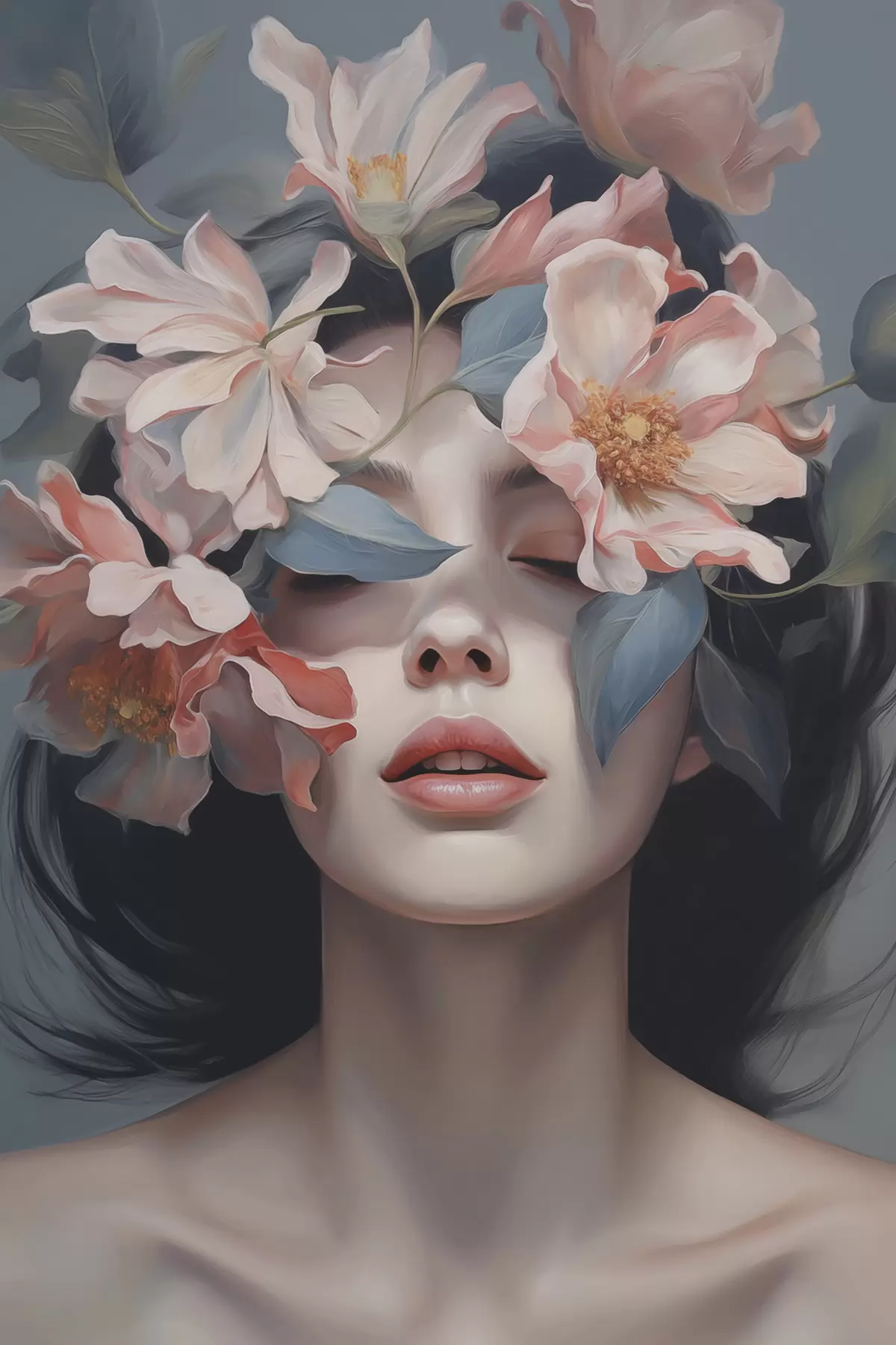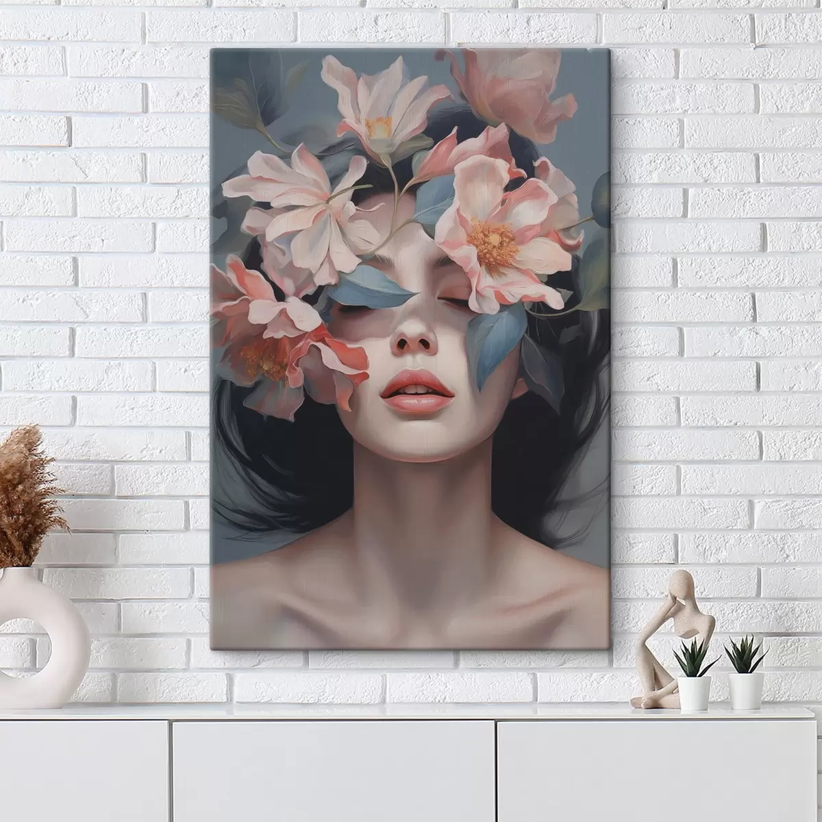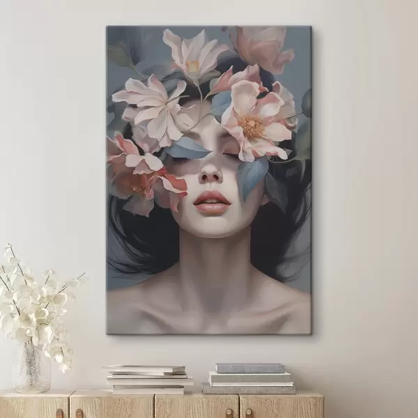 murales Retrato abstracto de mujer con flores s47488