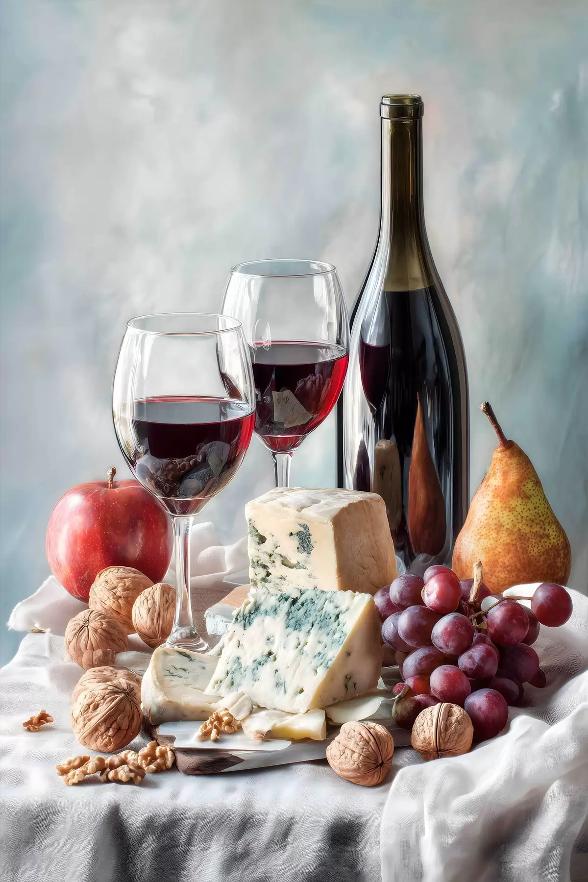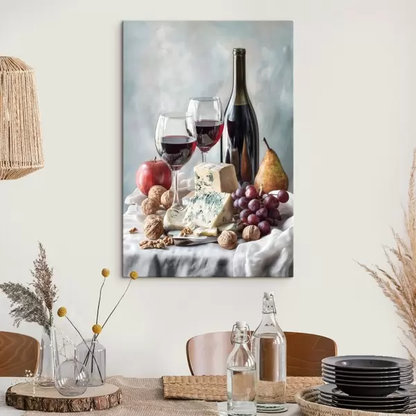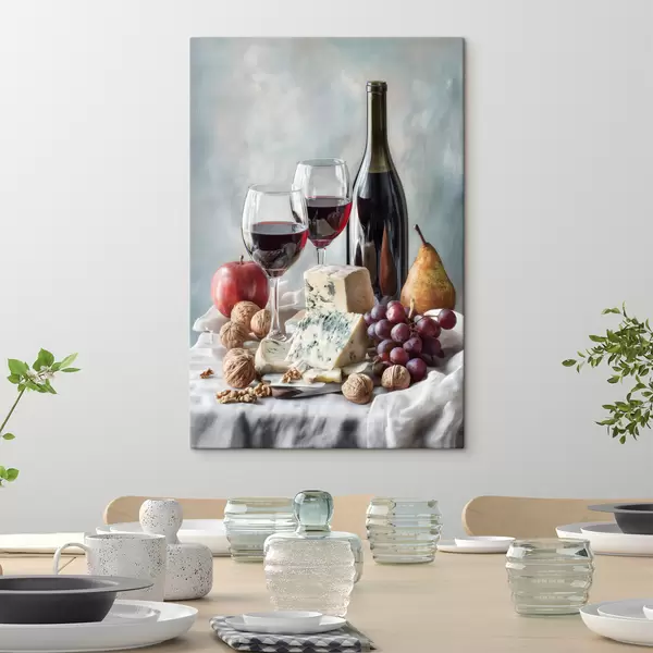 murales naturaleza muerta con vino, queso y frutos secos s47686