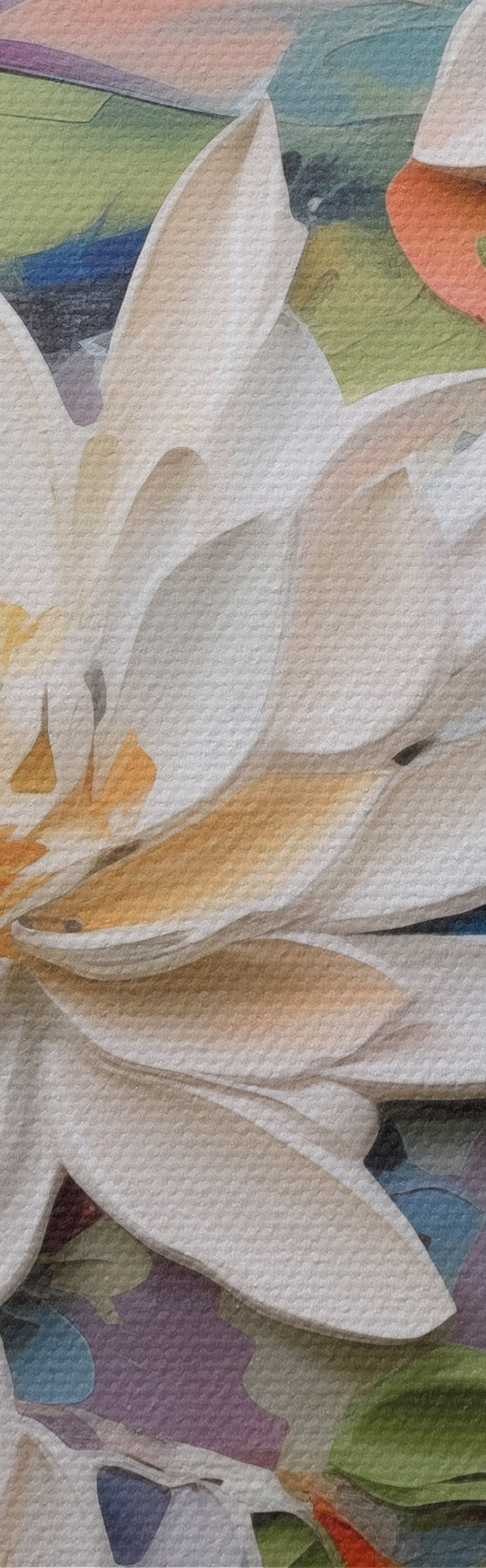 Hay tres tipos de material disponibles para pedidos: Lienzo Económico - material denso y duradero para impresión digital, idéntico al lienzo de pintor, superficie impermeable, reproducción realista de los detalles, material de grano medio. Lienzo Premium - la textura se asemeja a la de un lienzo de pintor (pequeños hilos entrelazados). Reproducción suave y detallada de la imagen sobre una superficie mate. Eco-Premium - tejido 100% algodón de alta calidad. Gracias a las fibras naturales de algodón, el material es duradero y resistente al desgaste. Excelente reproducción del color y el detalle.