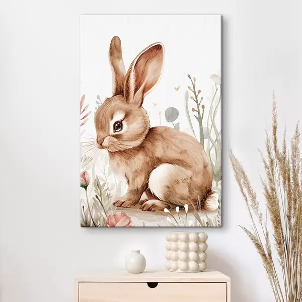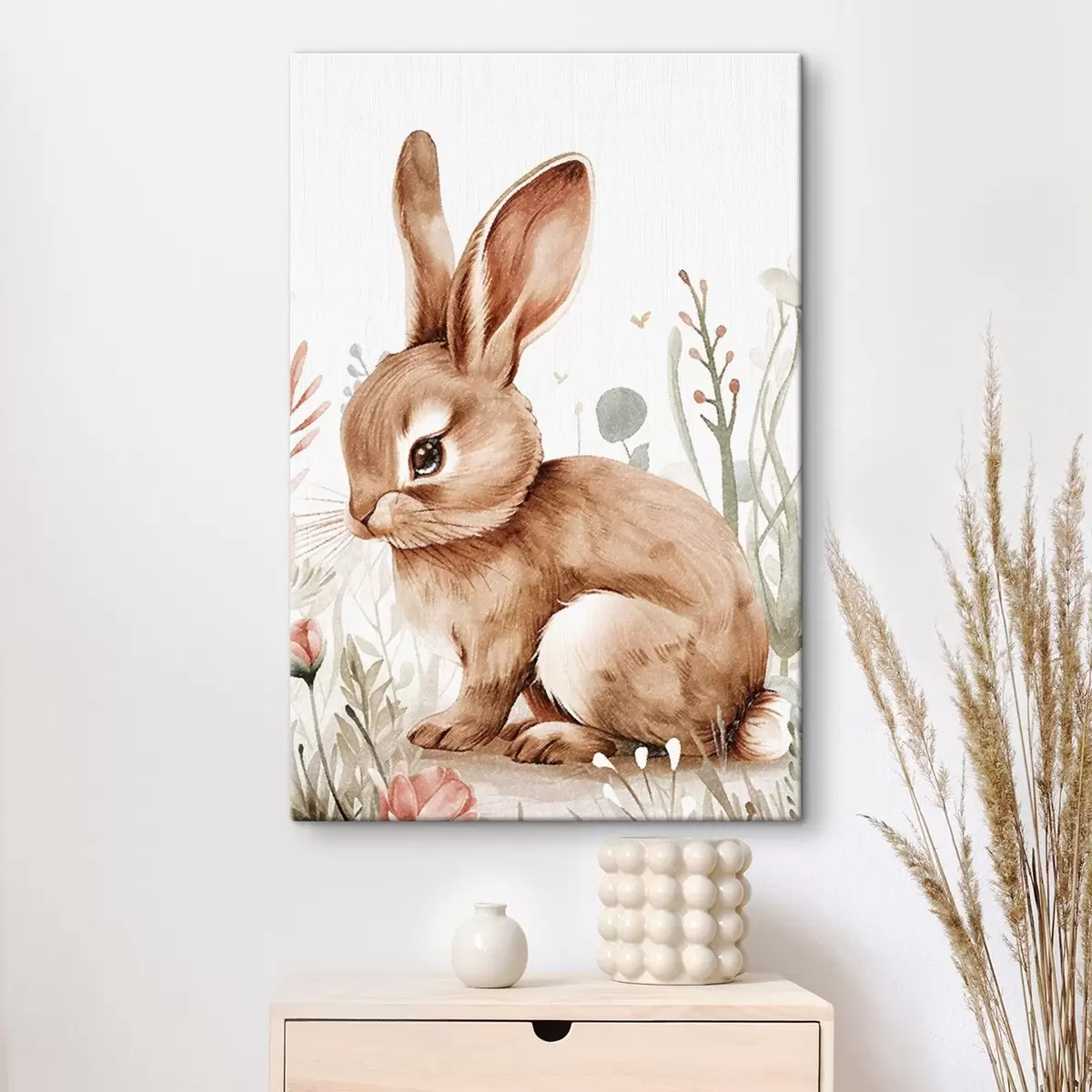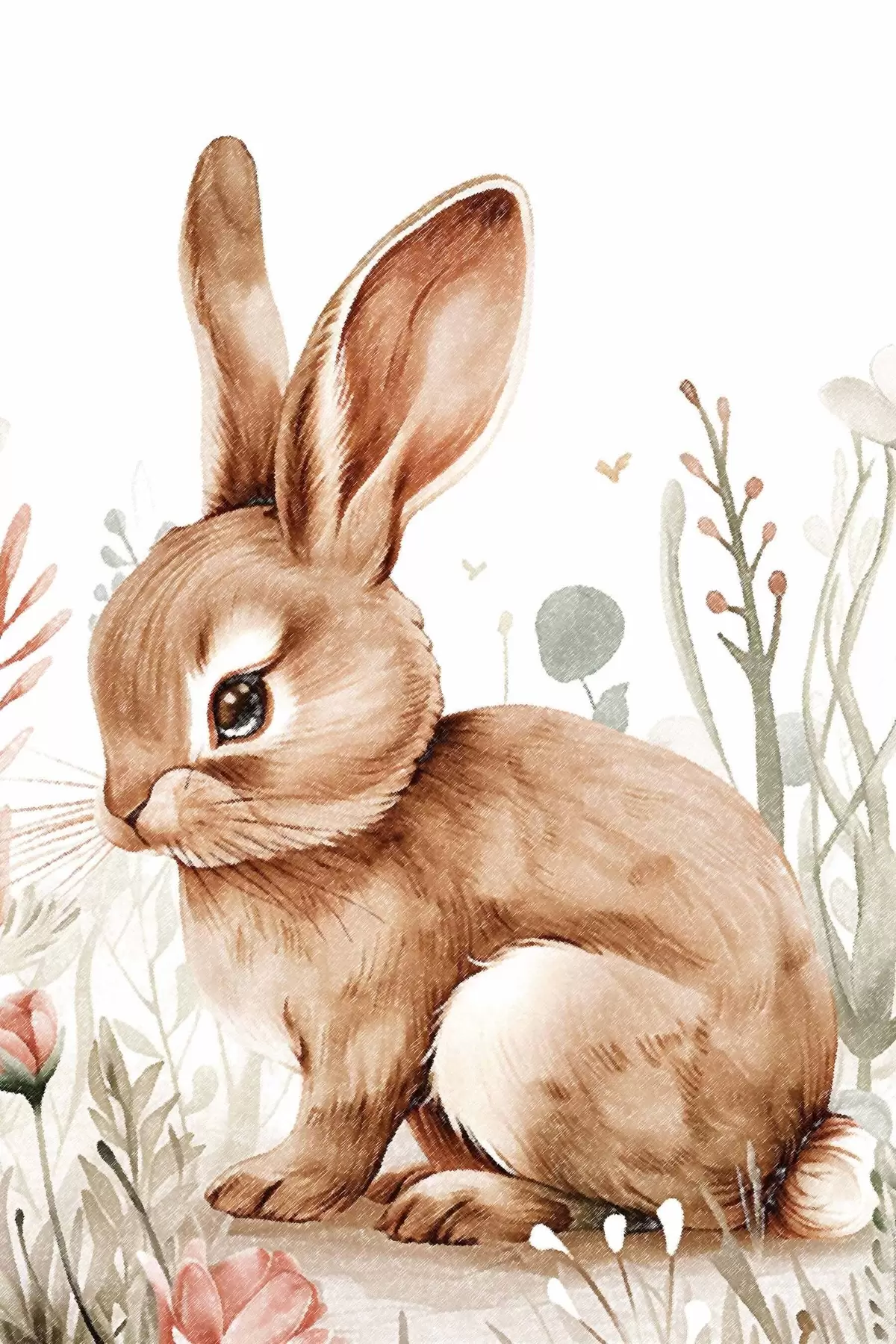 murales Lindo conejito entre flores, efecto lápiz s47741