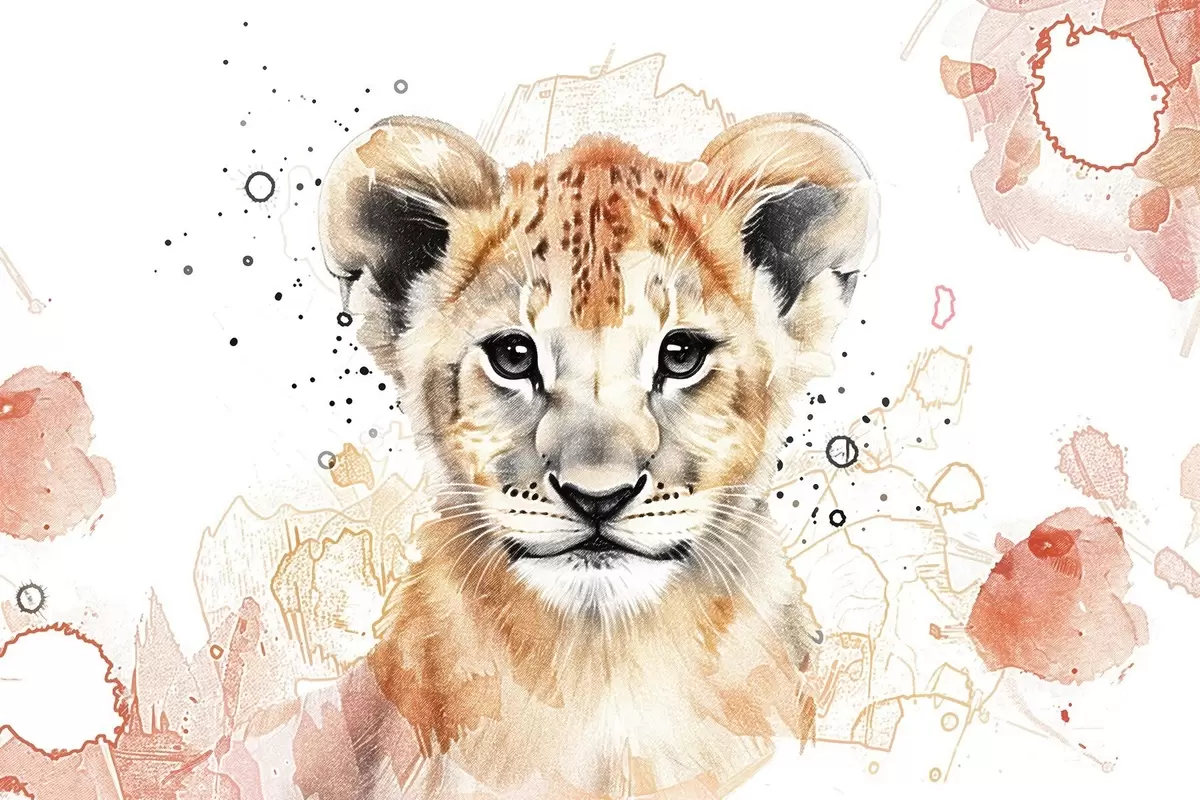 murales Cachorro de león en acuarela, efecto lápiz s47742