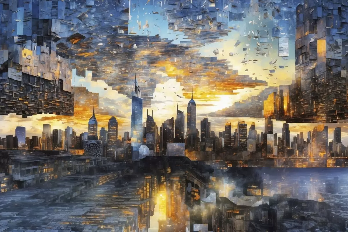 murales Fantástico paisaje urbano con un cielo fragmentado s47768
