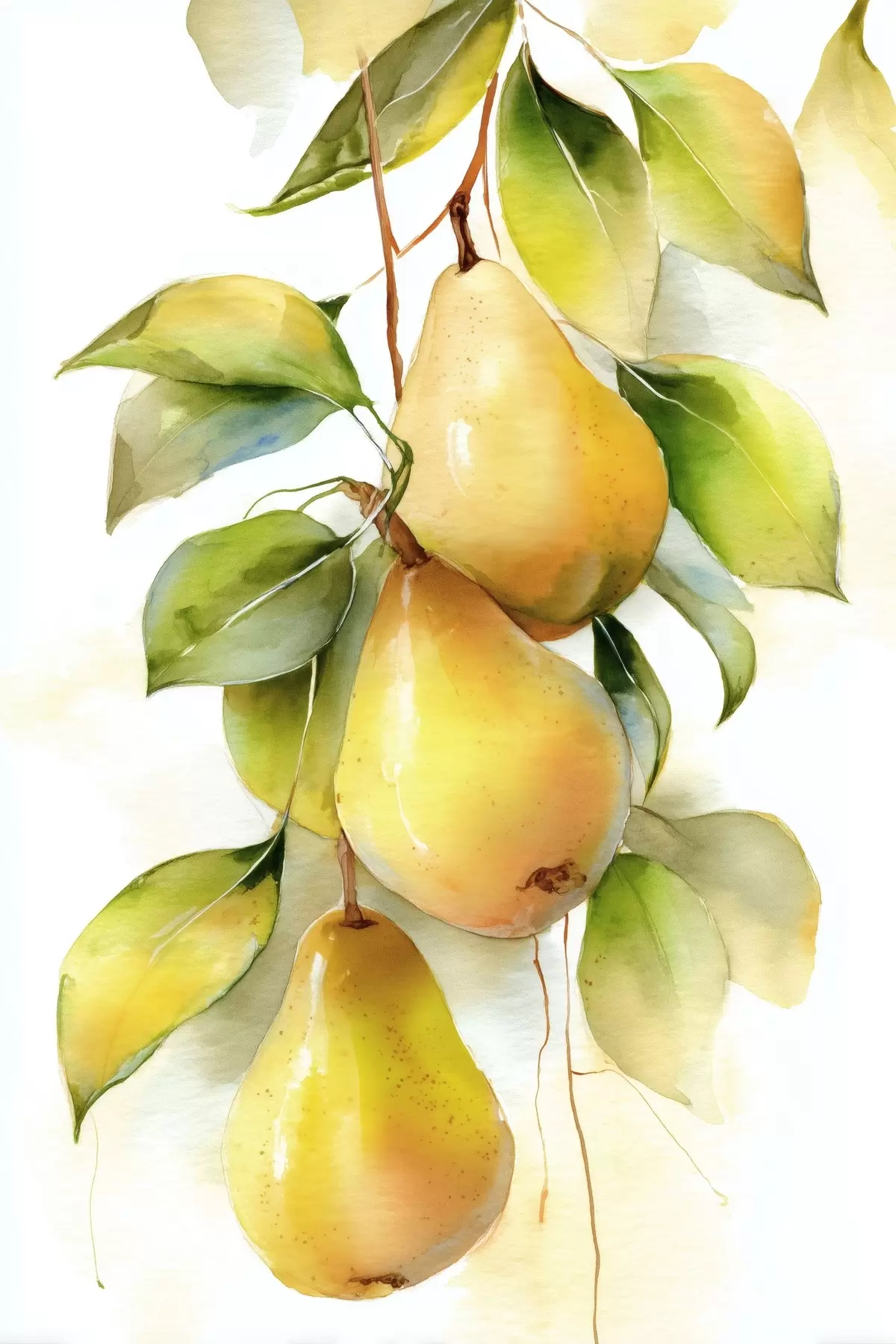 murales Jugosas peras amarillas en estilo acuarela s47931