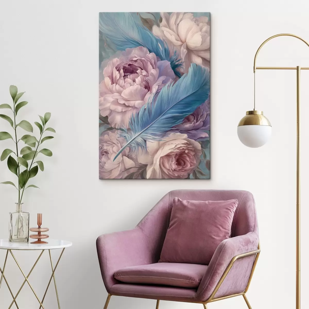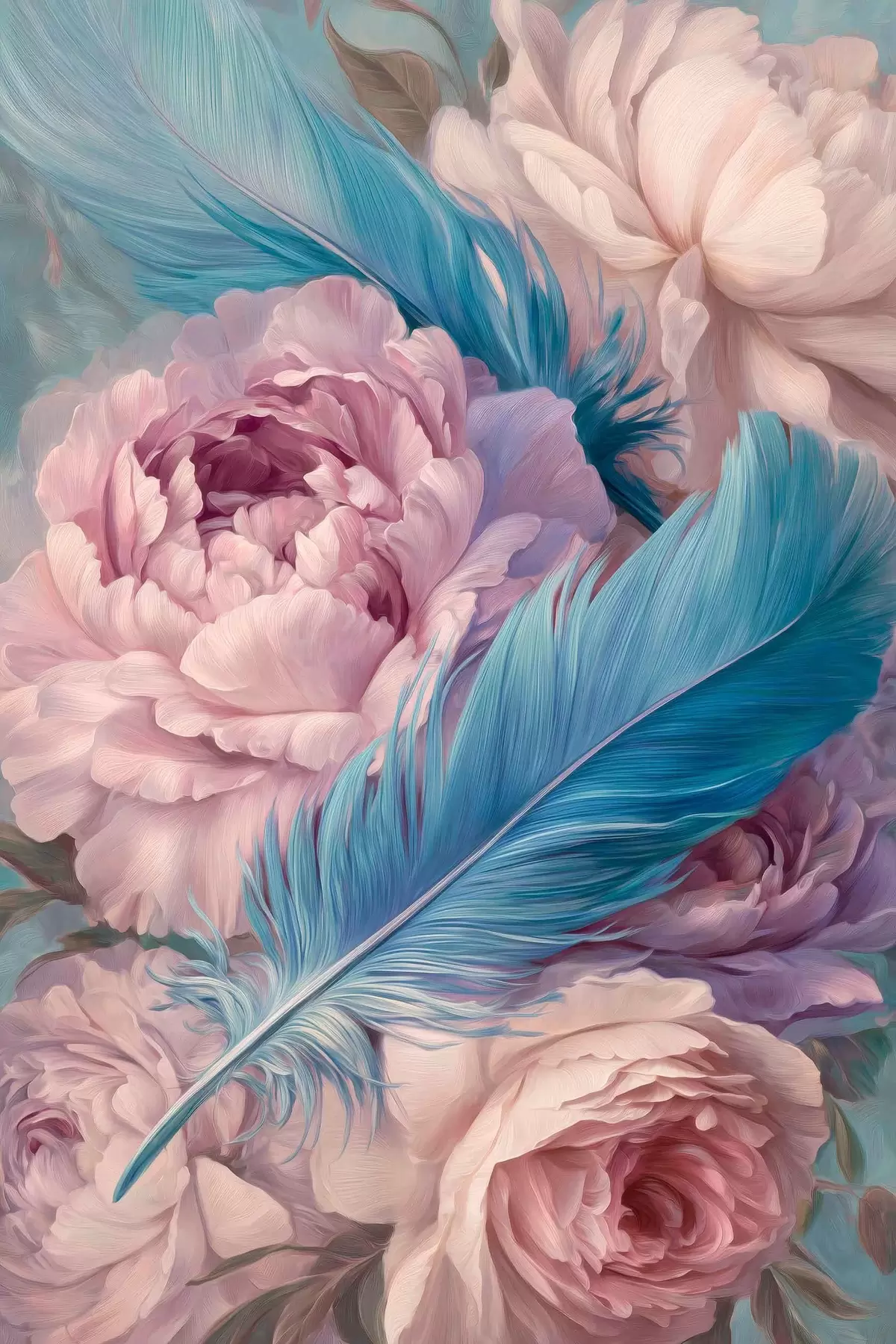 murales plumas entre peonías s47940