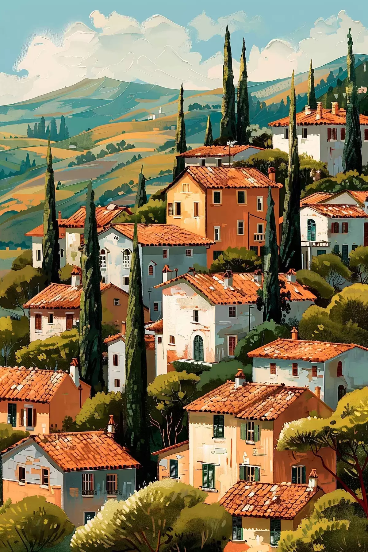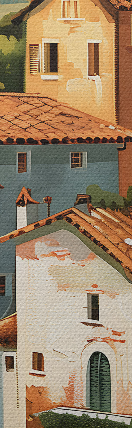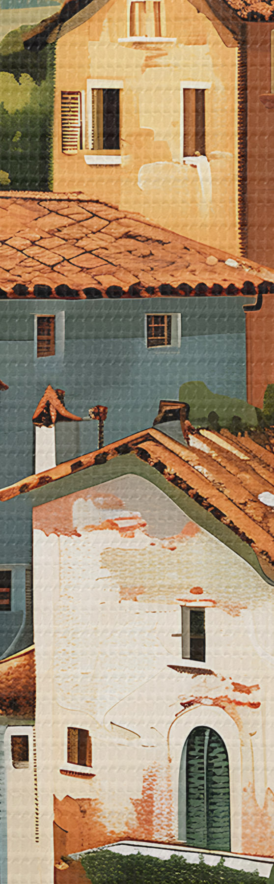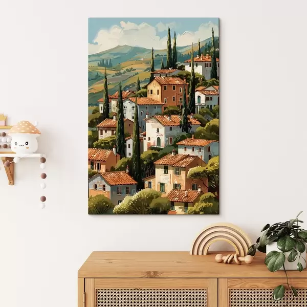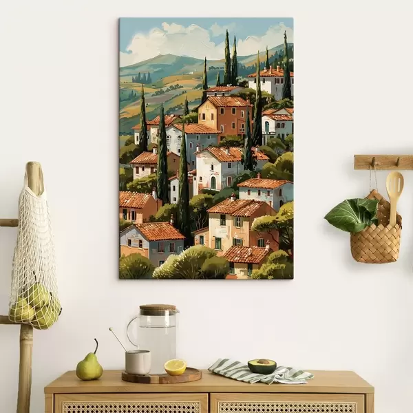 murales Pueblo mediterráneo en una ladera, con casas de tonos cálidos y tejados de terracota. s47951