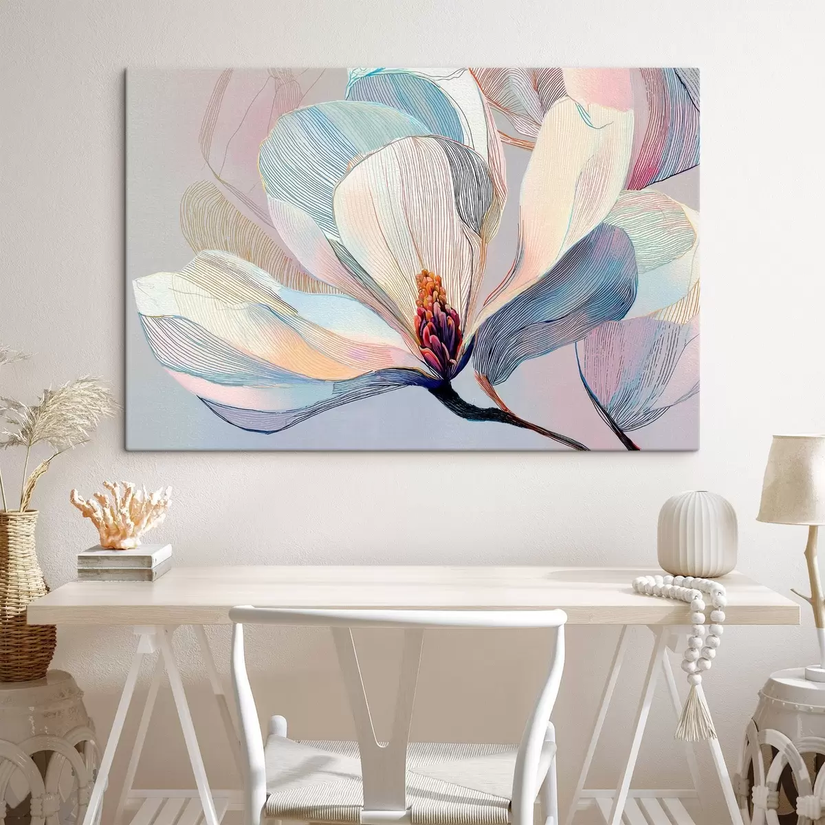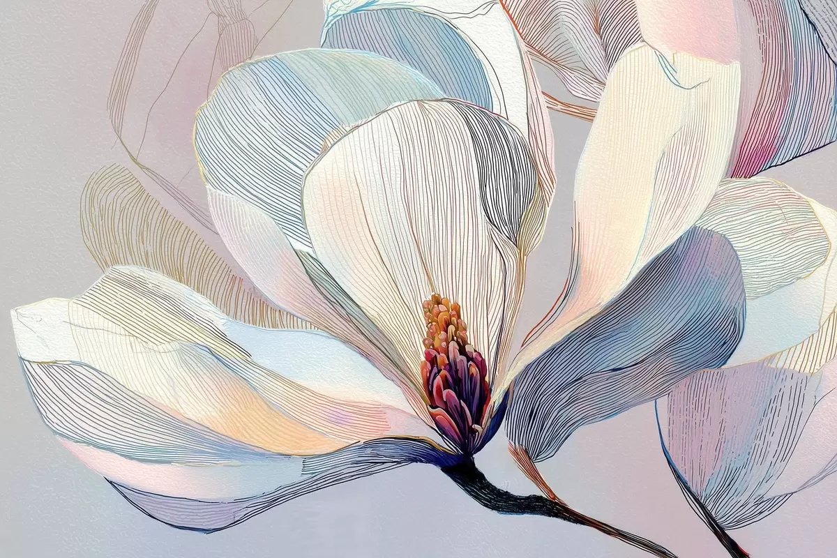murales Delicada magnolia en tonos azul-rosa s47967