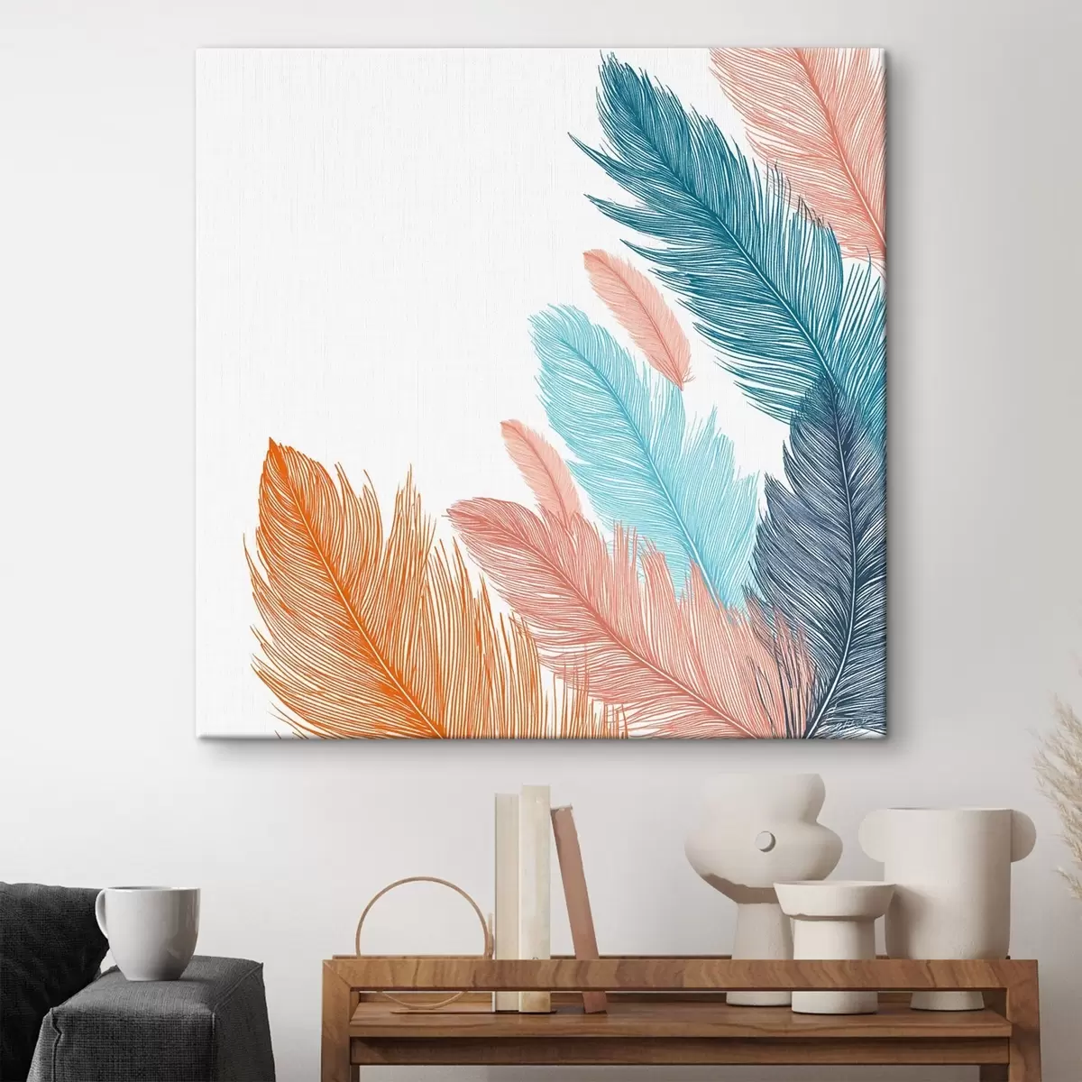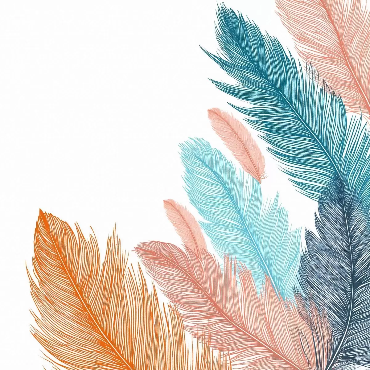 murales Plumas multicolores sobre fondo blanco s48003