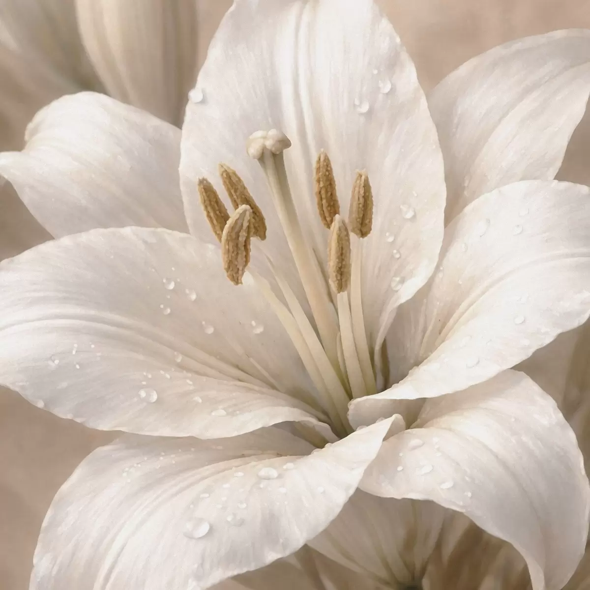 murales Primer plano de una flor blanca con gotas de agua s48028
