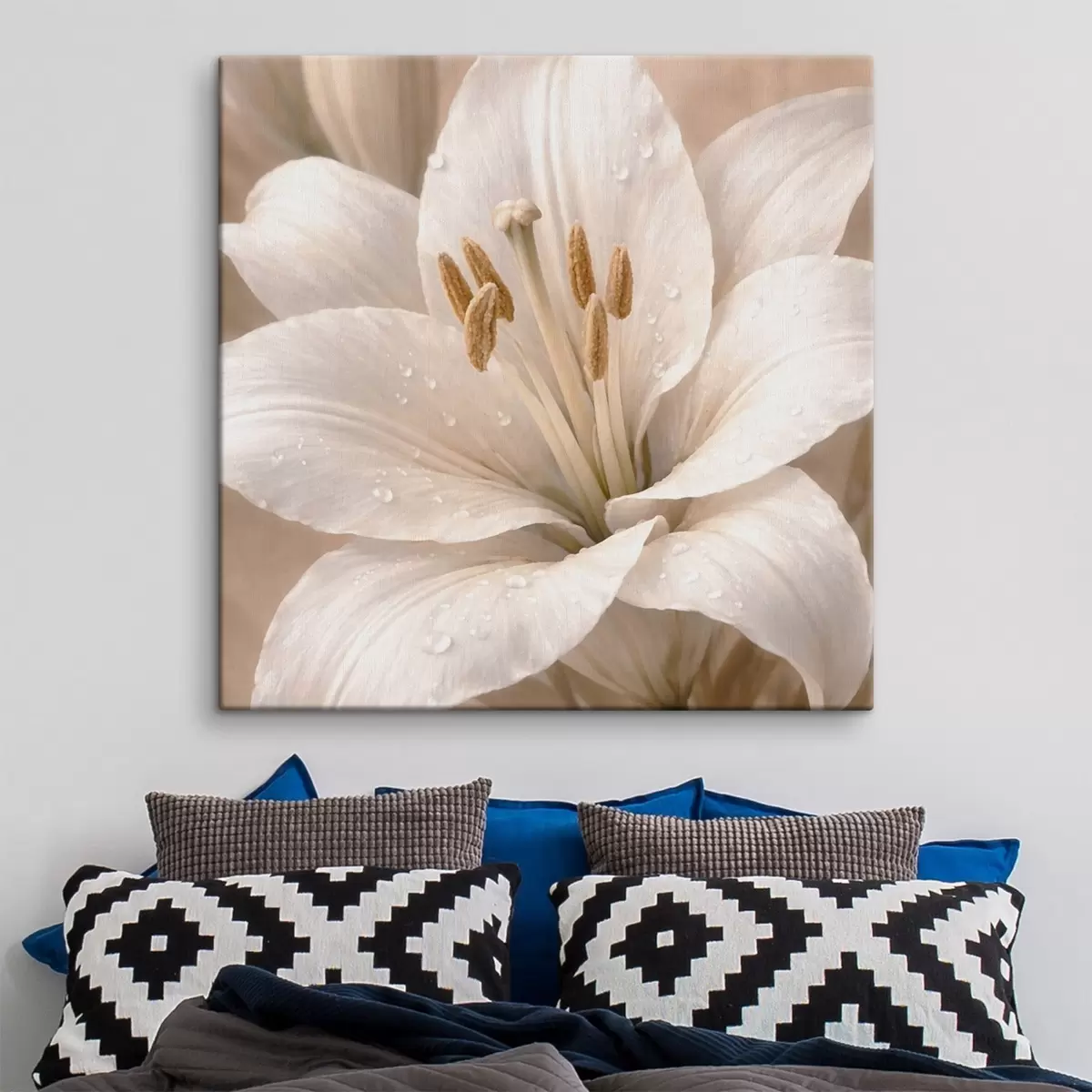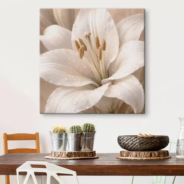 Hay tres tipos de material disponibles para pedidos: Lienzo Económico - material denso y duradero para impresión digital, idéntico al lienzo de pintor, superficie impermeable, reproducción realista de los detalles, material de grano medio. Lienzo Premium - la textura se asemeja a la de un lienzo de pintor (pequeños hilos entrelazados). Reproducción suave y detallada de la imagen sobre una superficie mate. Eco-Premium - tejido 100% algodón de alta calidad. Gracias a las fibras naturales de algodón, el material es duradero y resistente al desgaste. Excelente reproducción del color y el detalle.