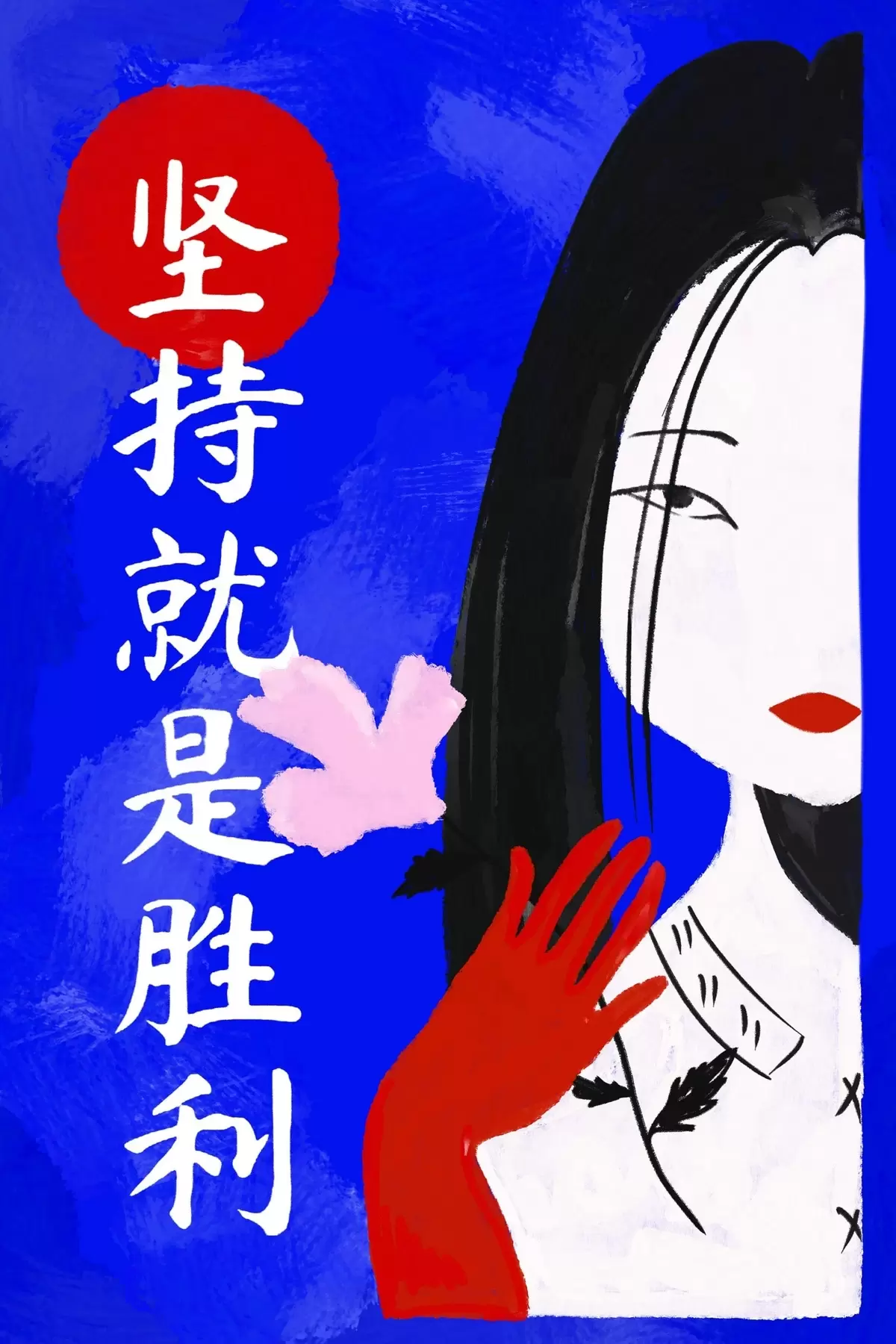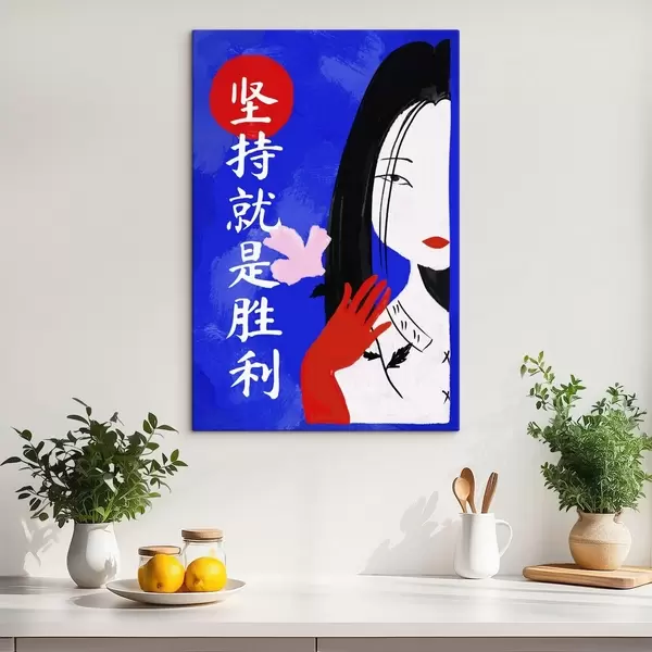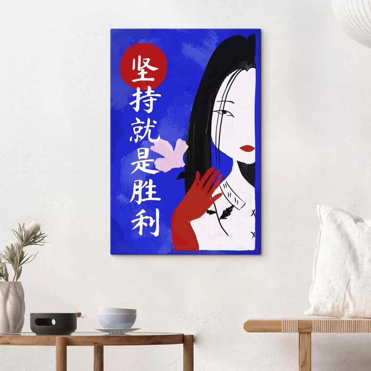 murales Retrato estilizado de una mujer con fondo azul y texto s48032