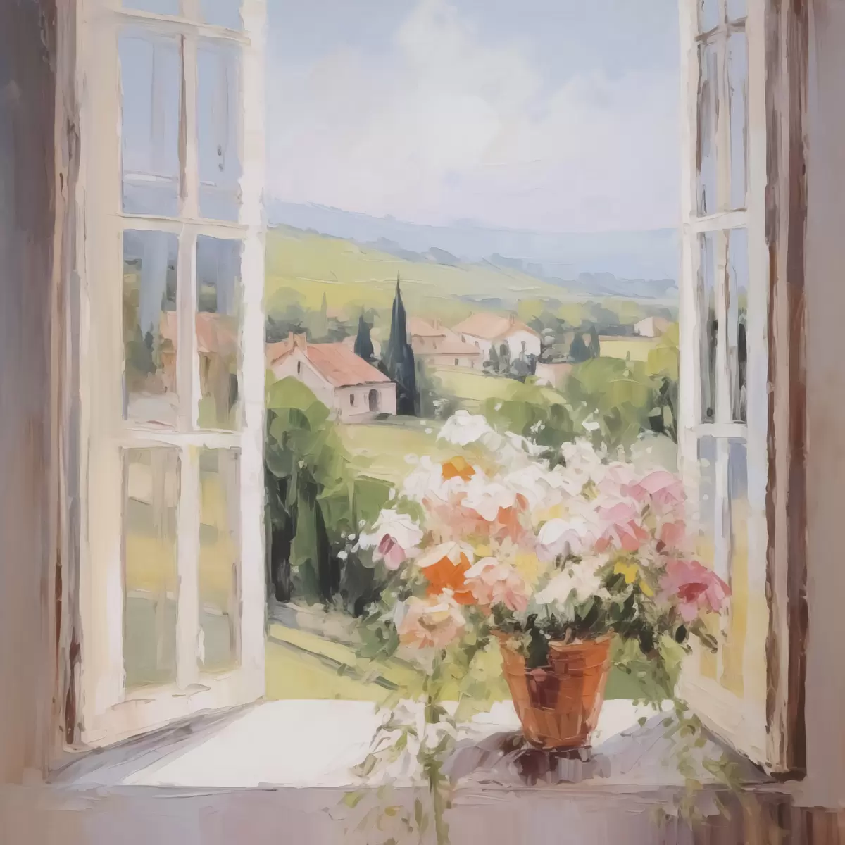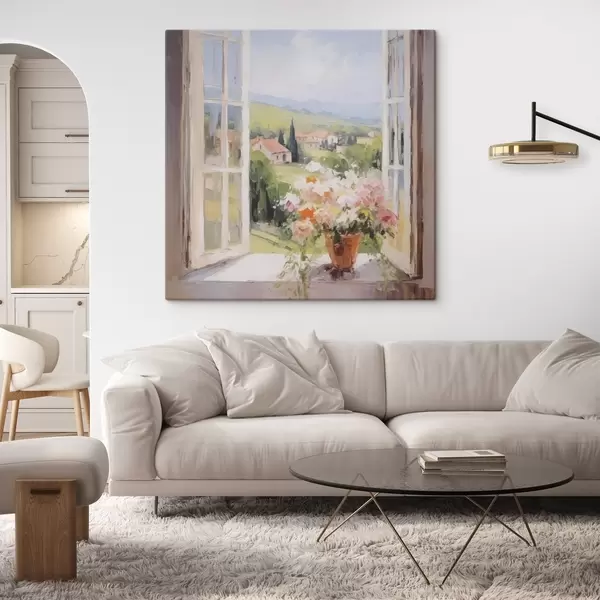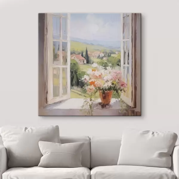 murales Un ramo de flores en un jarrón junto a la ventana. s48052