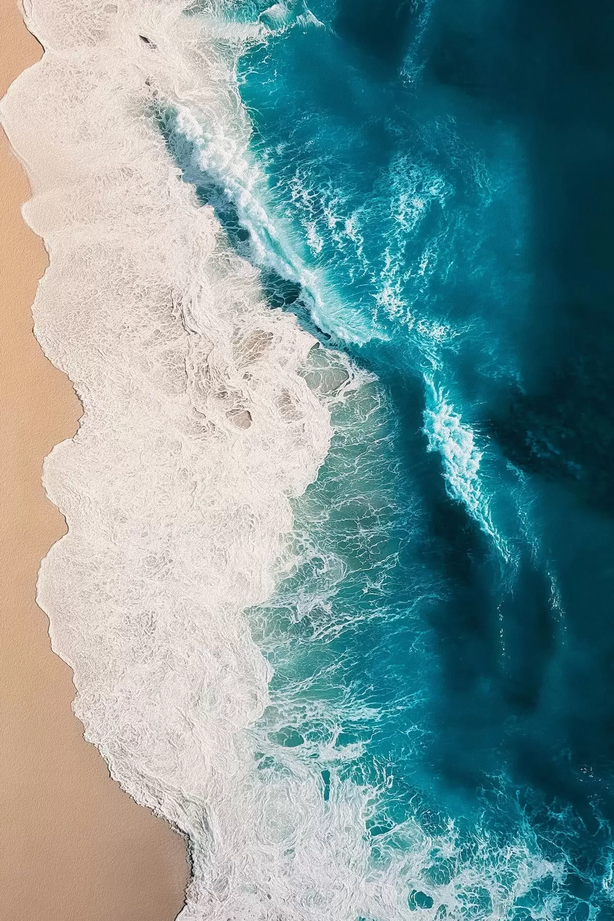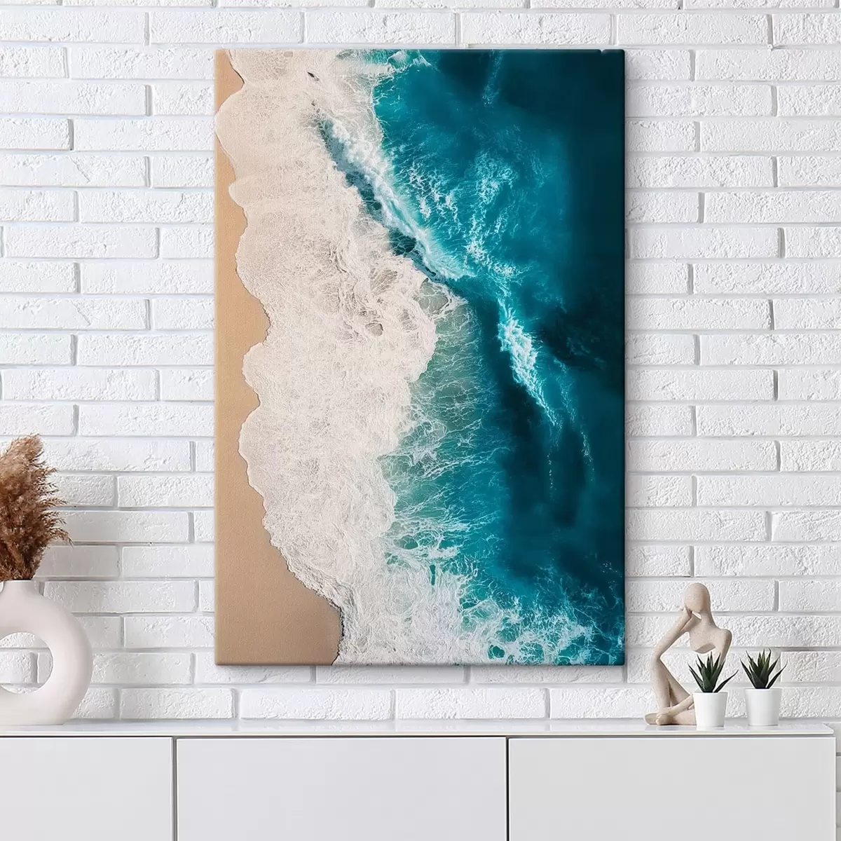 murales Vista aérea superior de las olas del mar rompiendo en la playa de arena. s48062