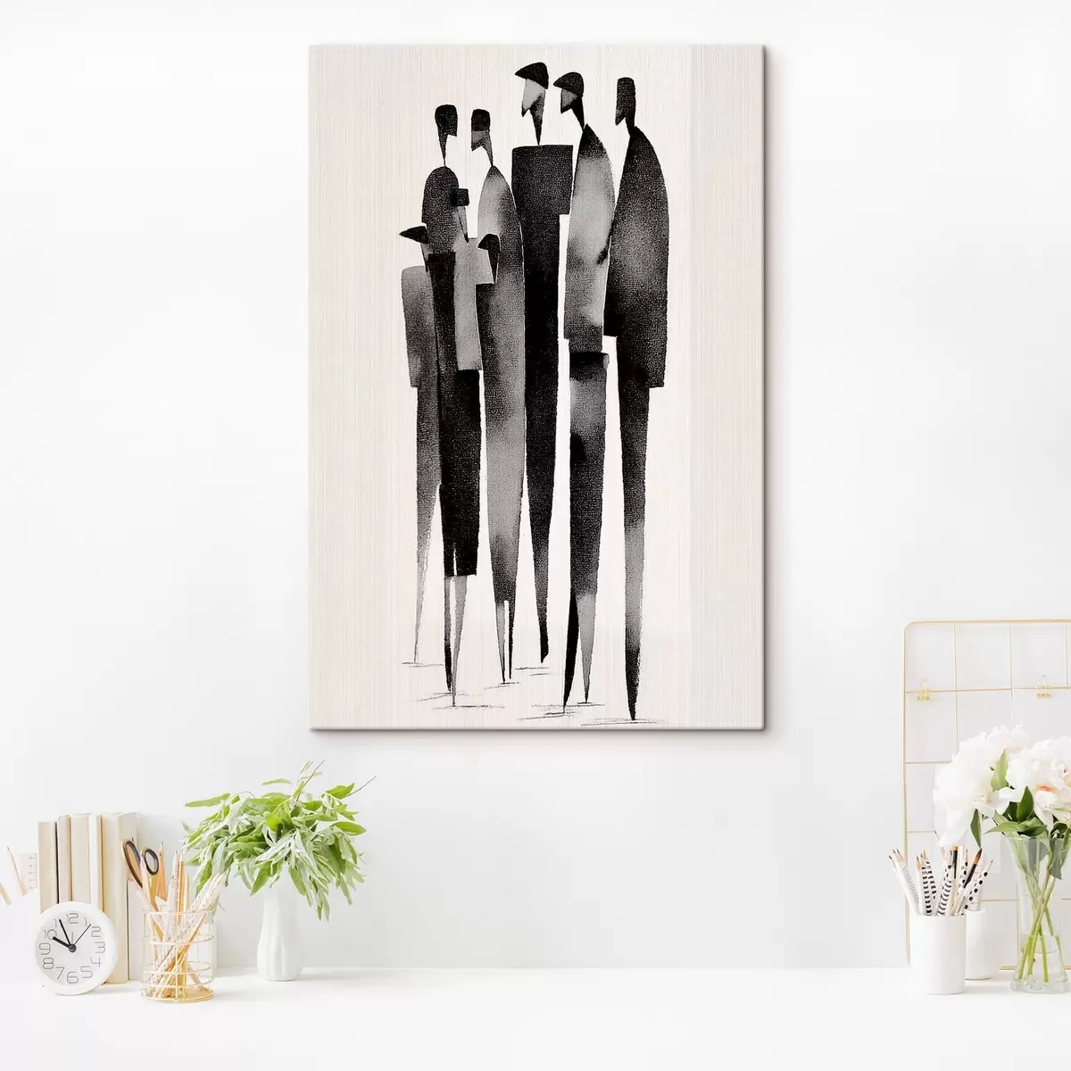 murales Figuras humanas minimalistas y alargadas colocadas en fila. s48068