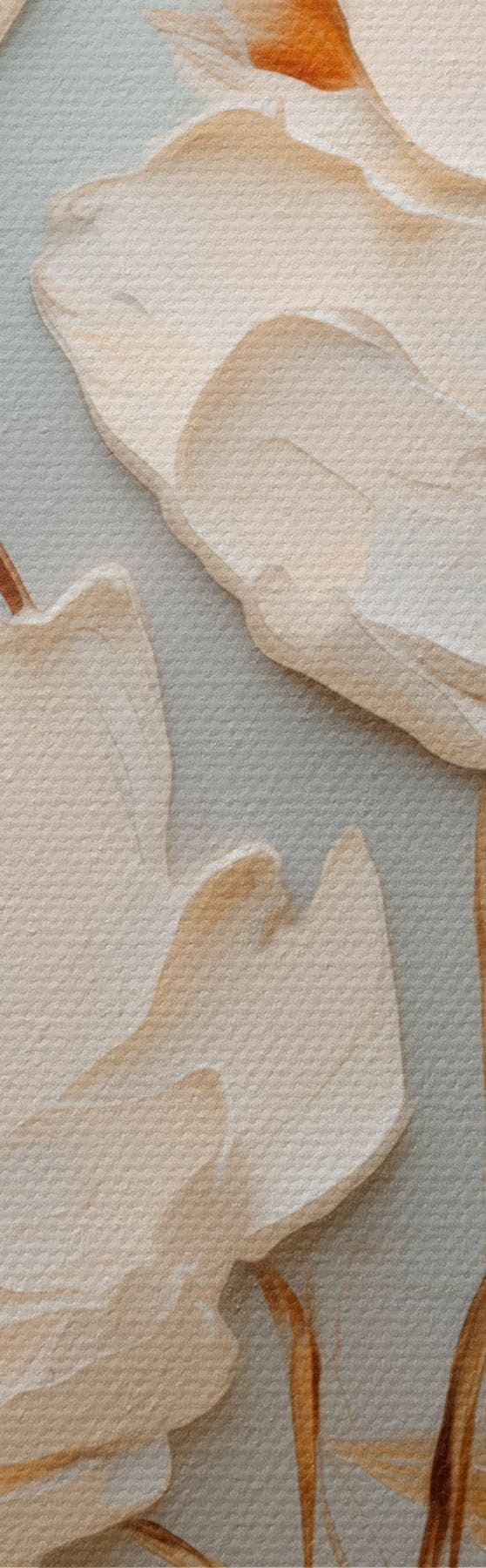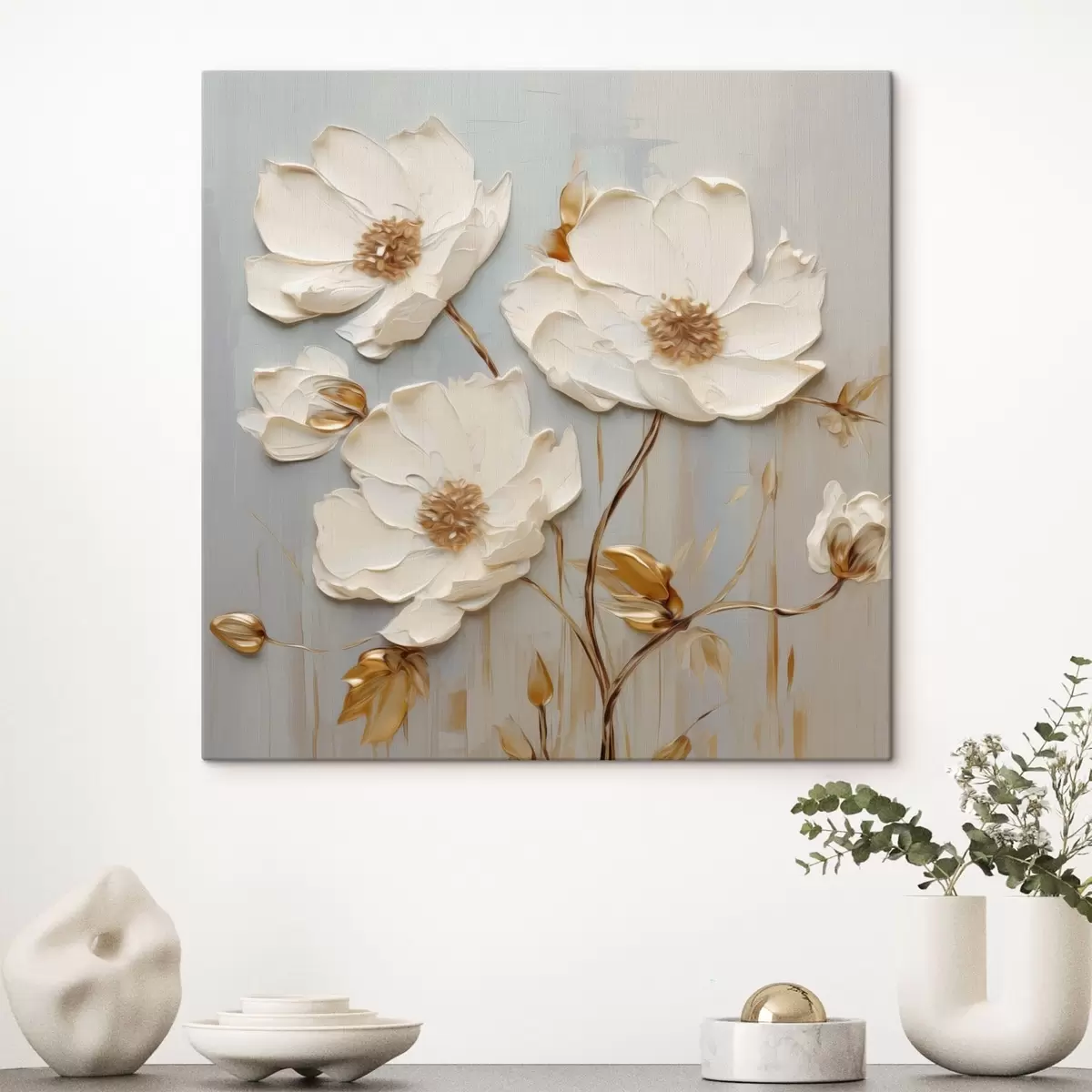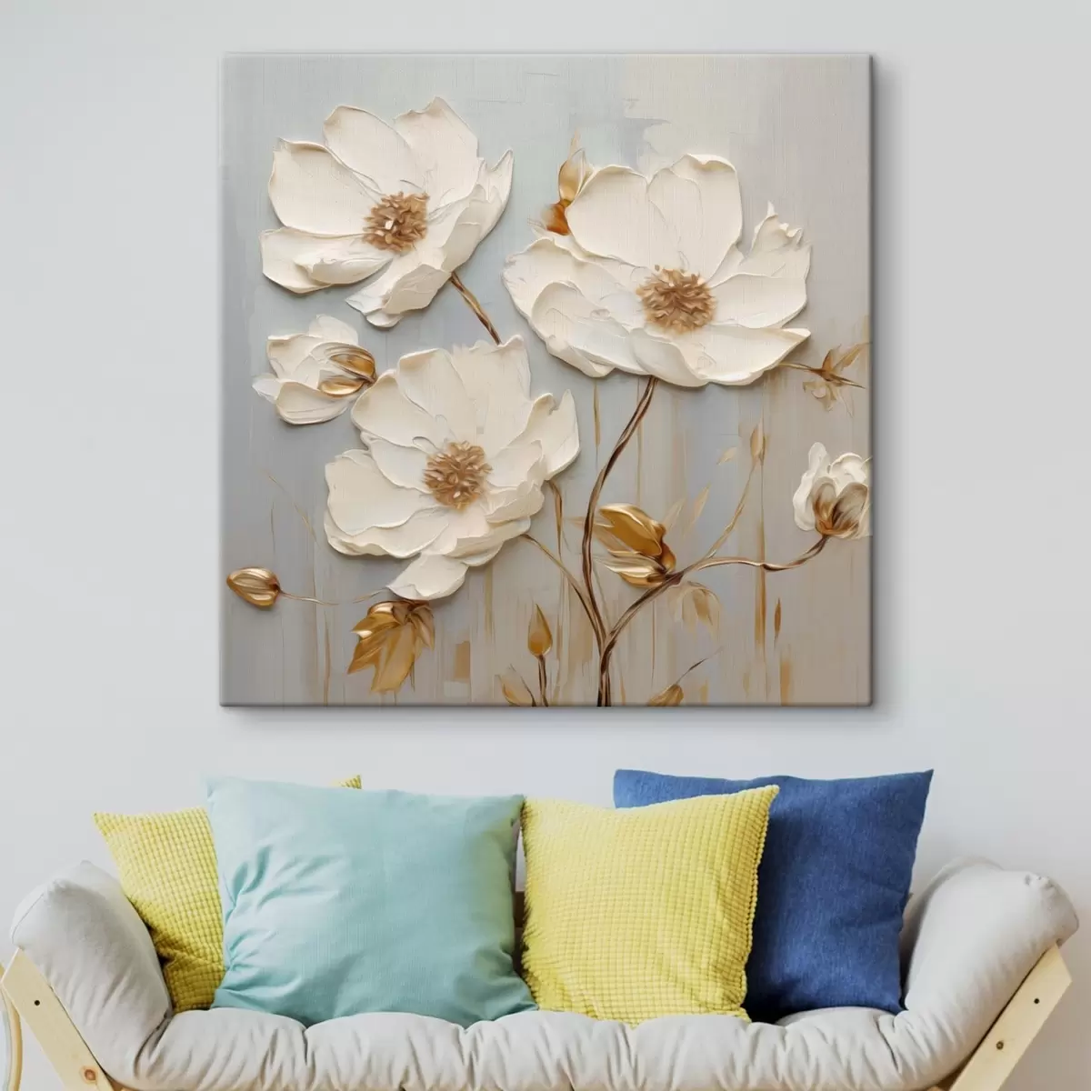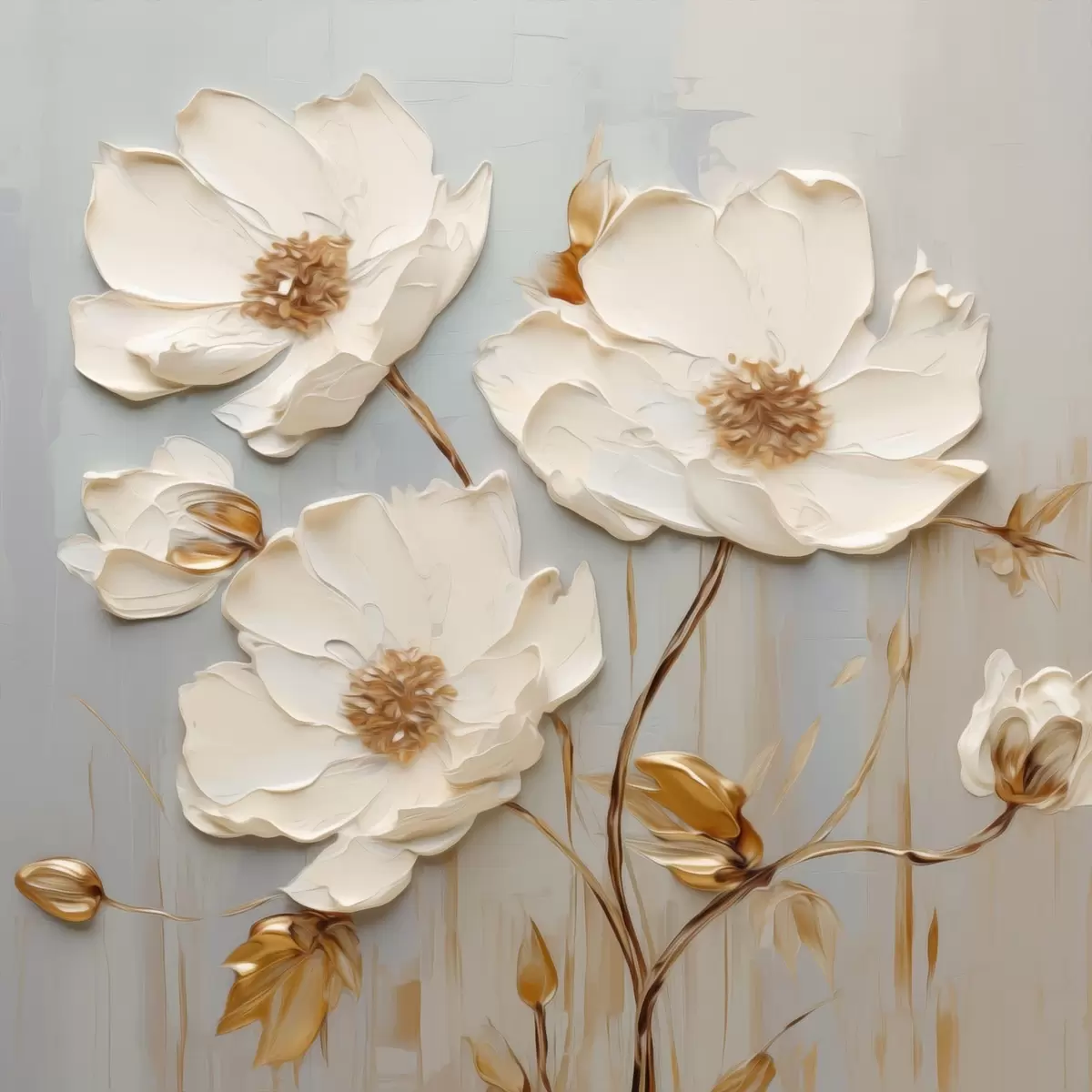 murales Flores blancas en relieve con hojas cálidas s48093