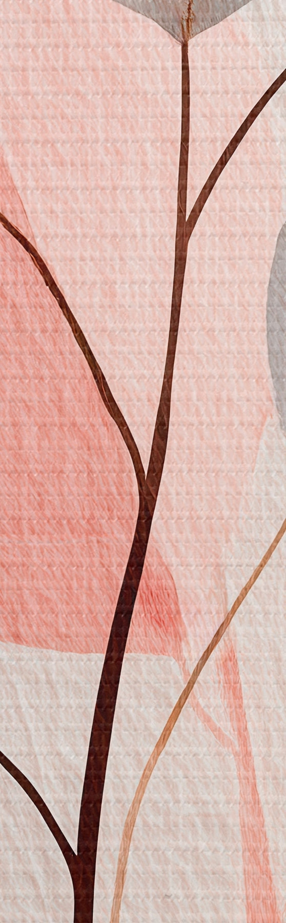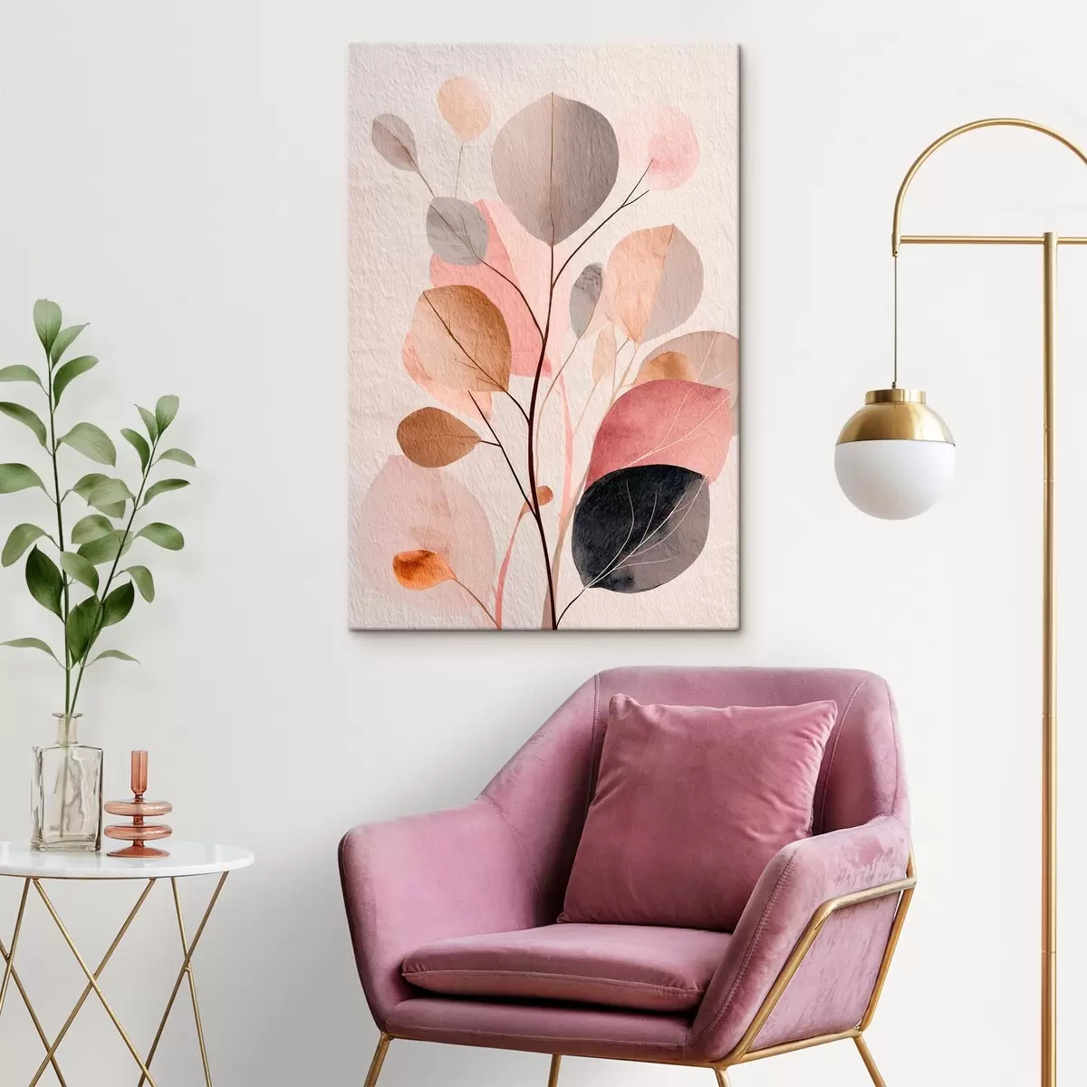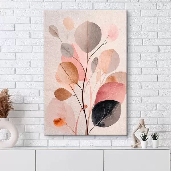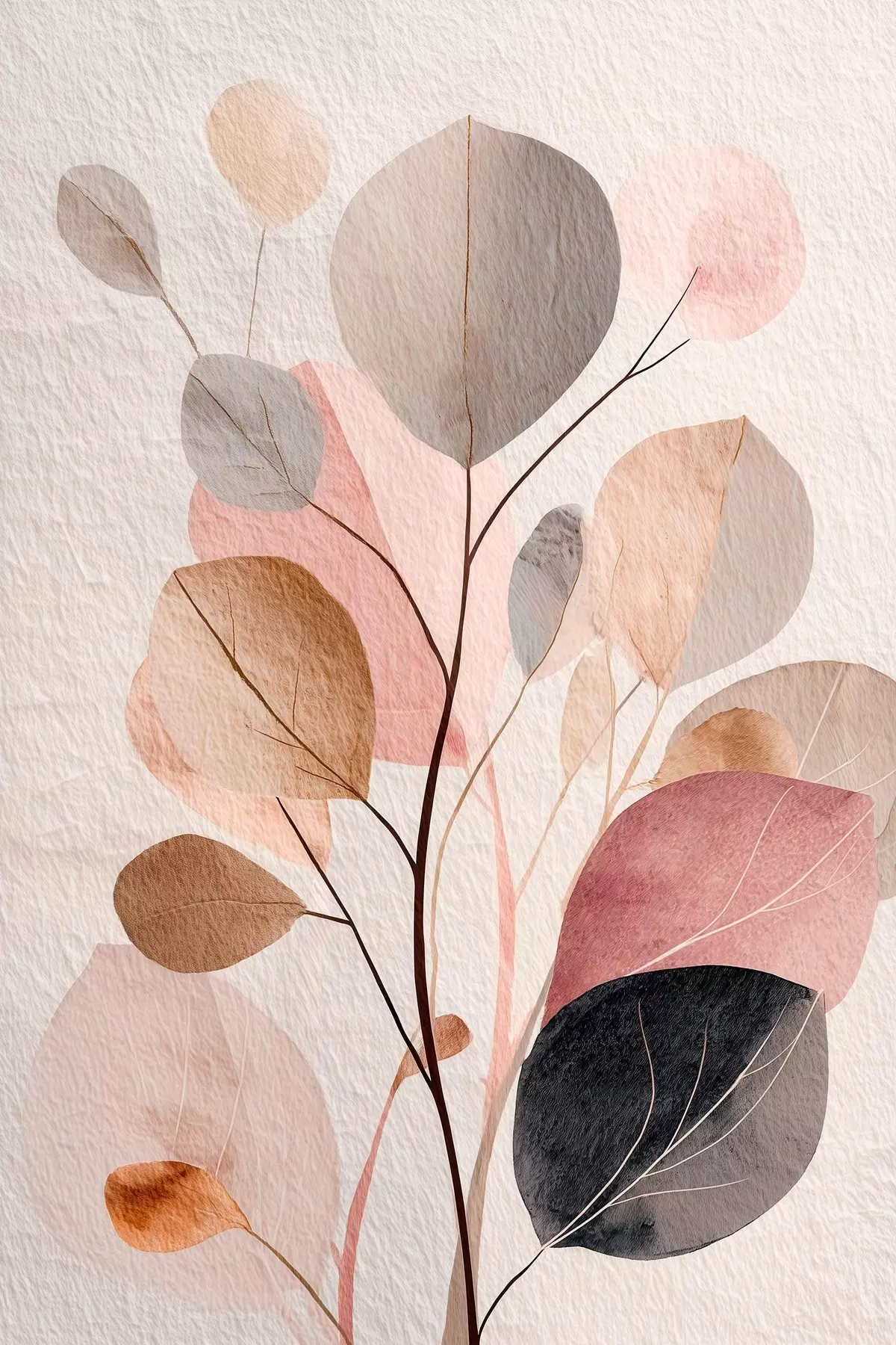 murales Rama abstracta con hojas redondeadas en tonos cálidos de beige y coral s48187