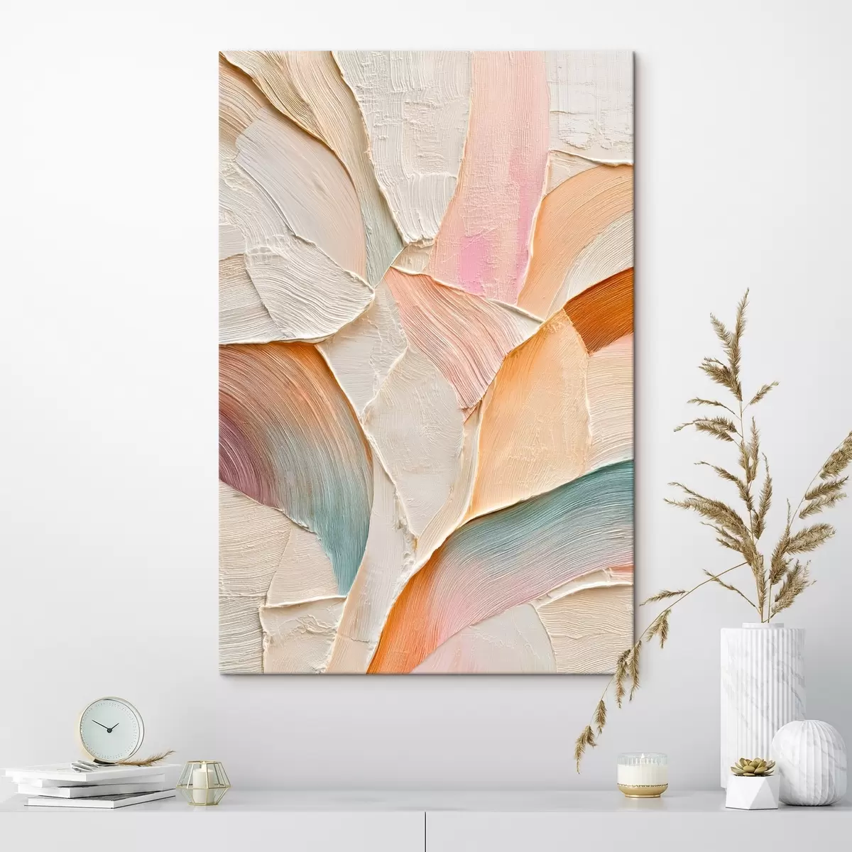 murales Fondo abstracto con pinceladas dinámicas en tonos melocotón y azul s48202