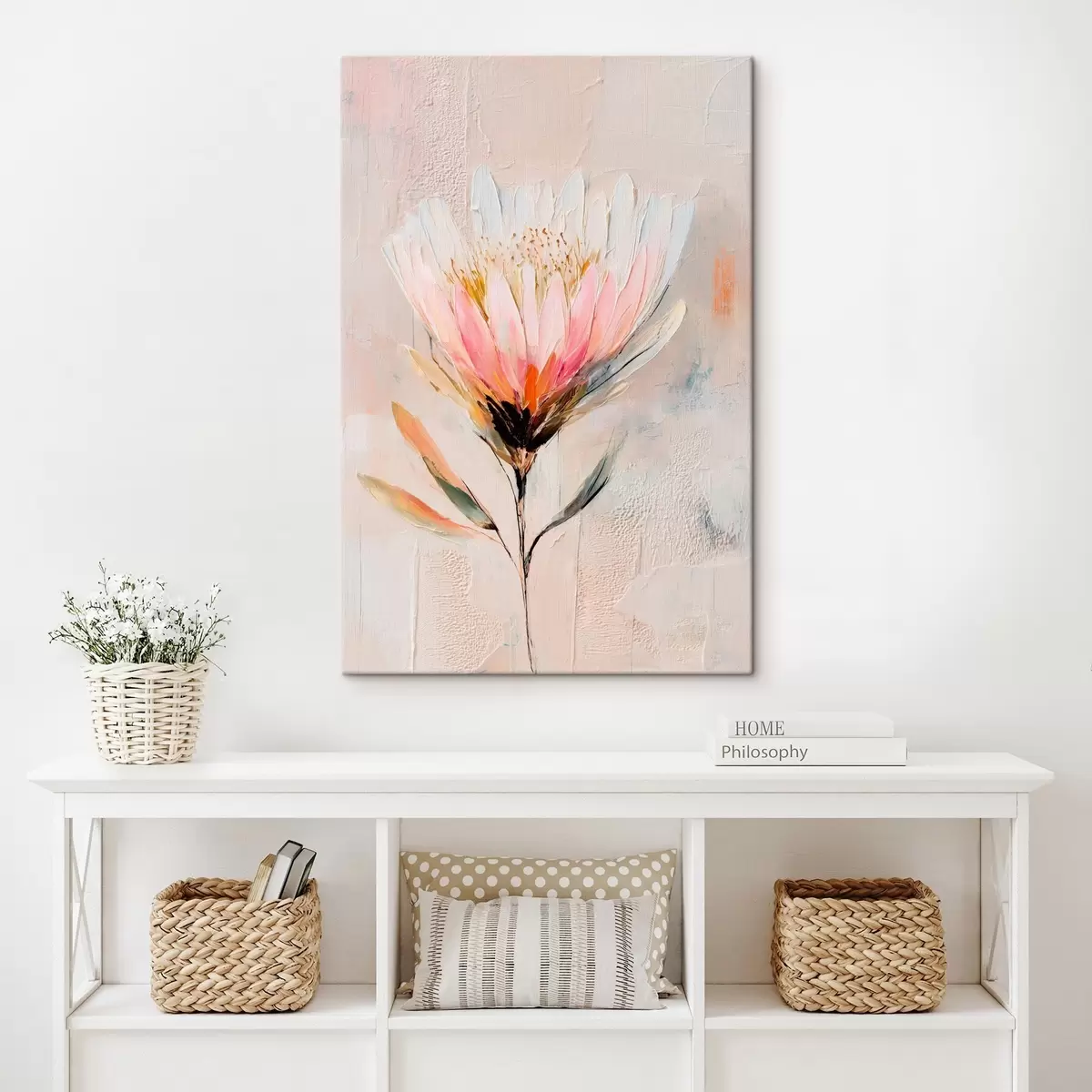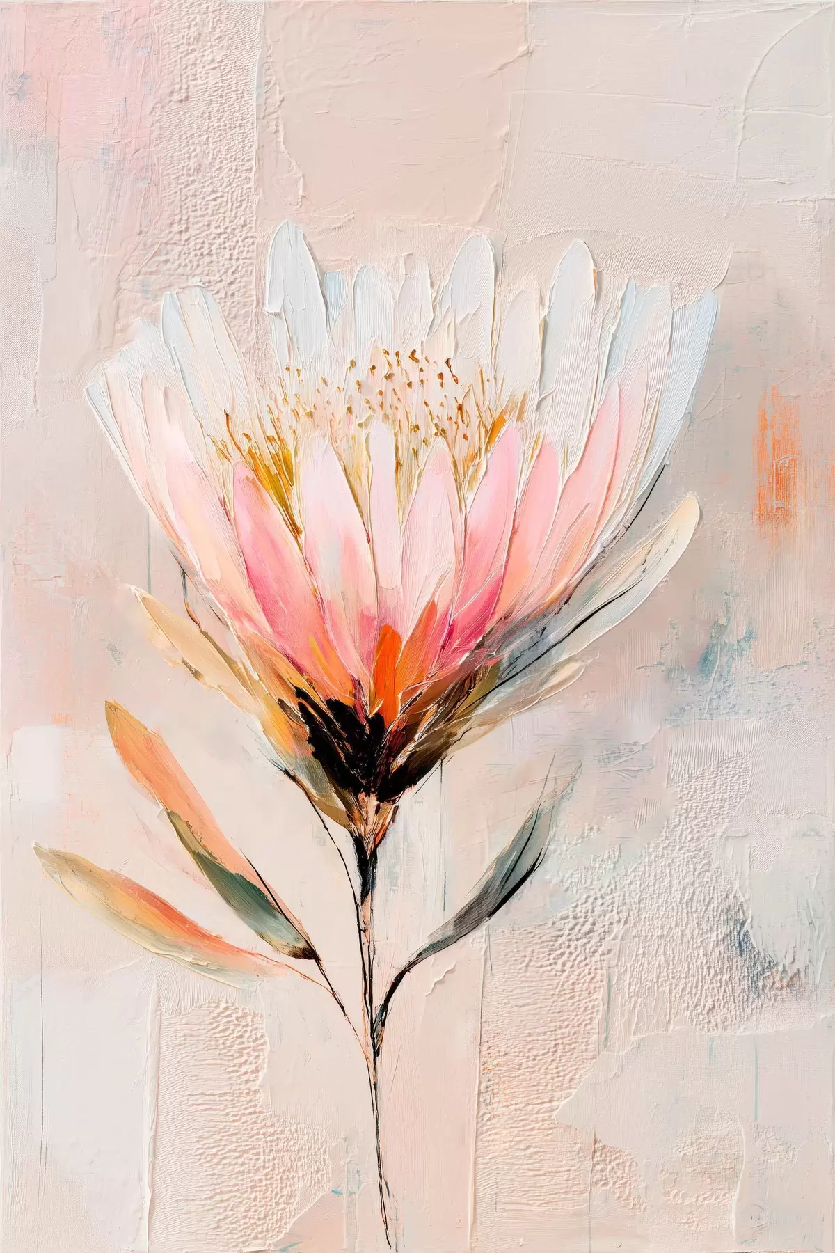 murales Flor de protea en suaves tonos rosados, al estilo de una pintura al óleo s48205