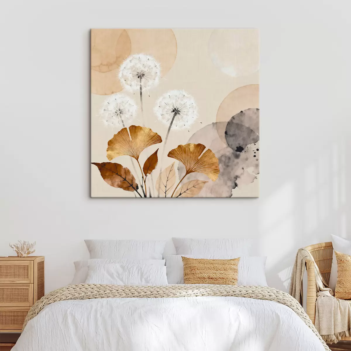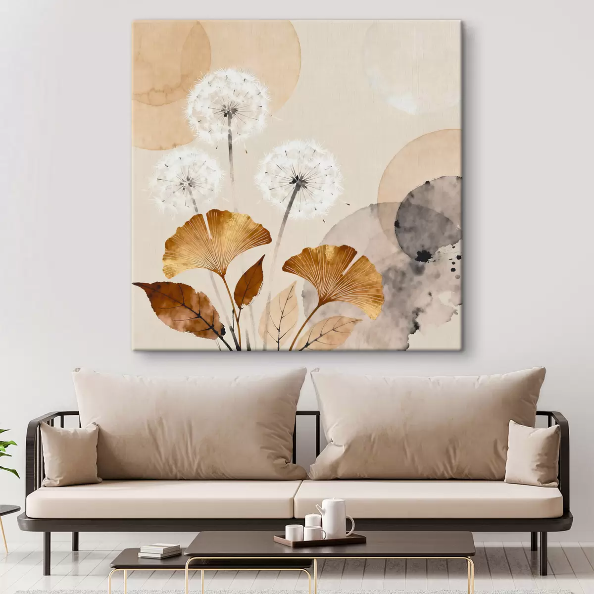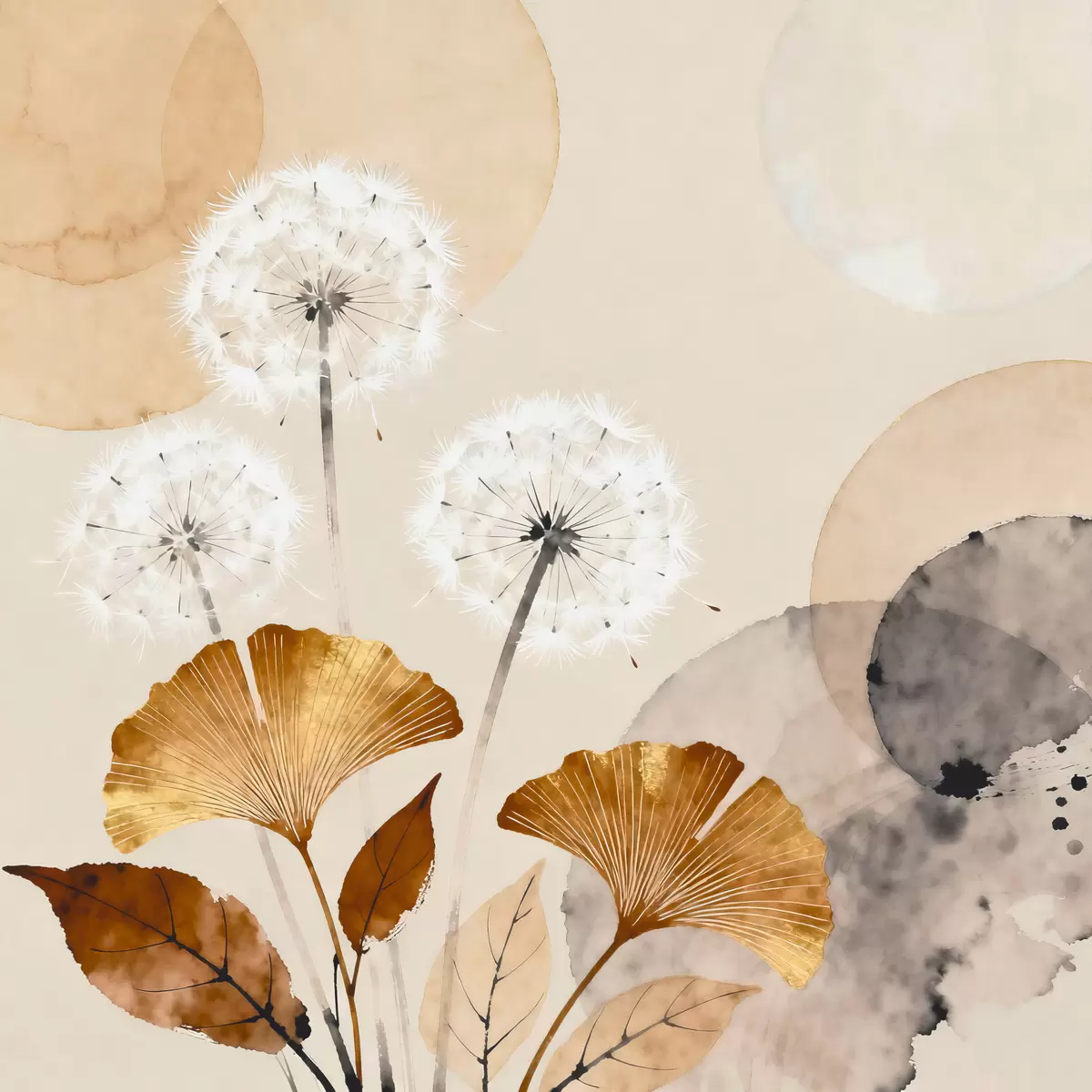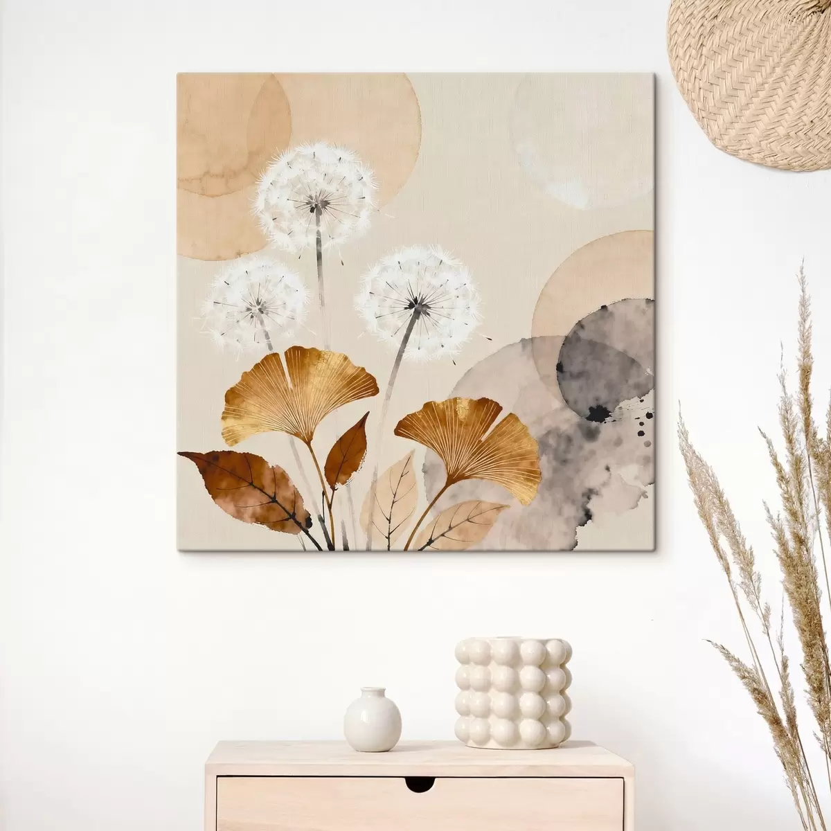 murales Dientes de león y hojas de ginkgo en estilo abstracto s48279