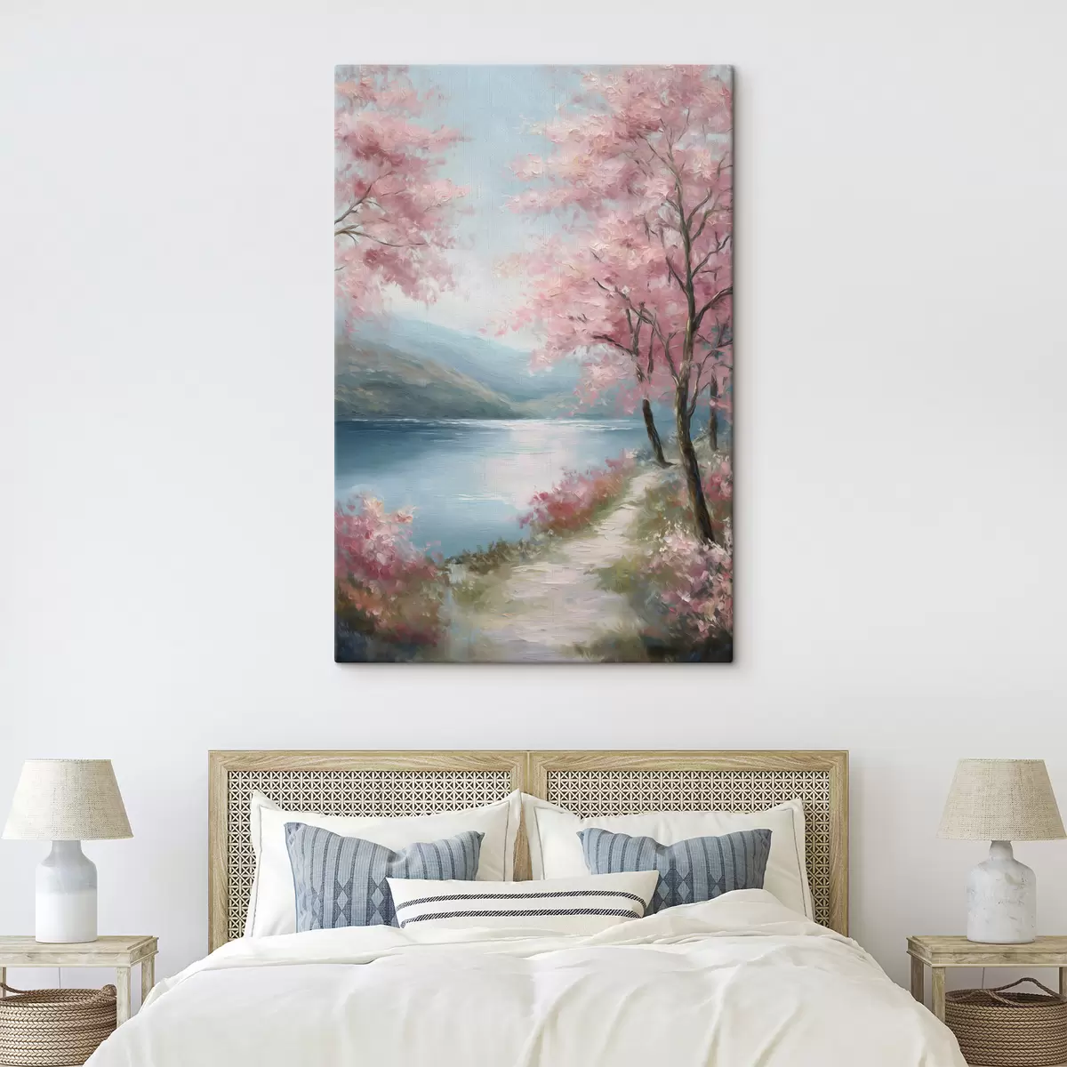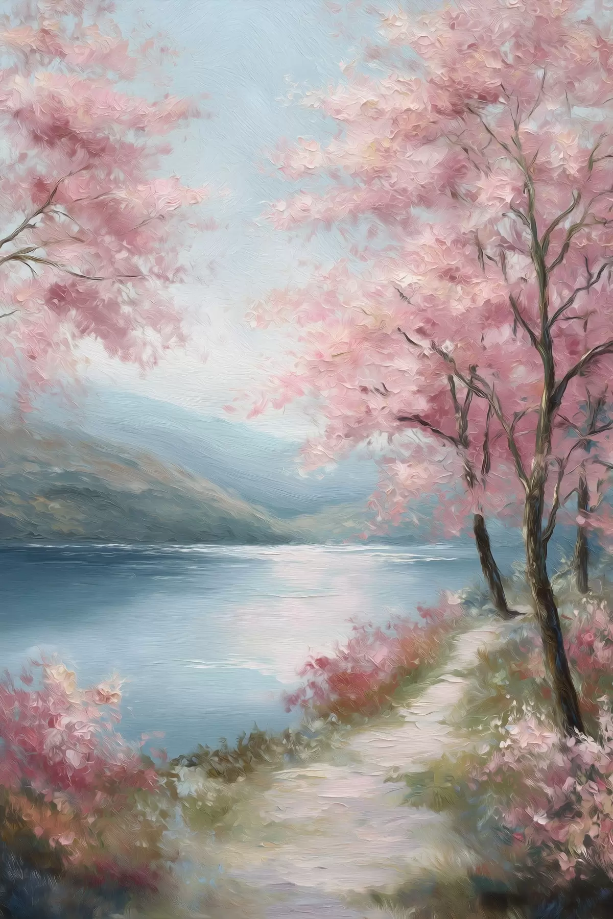 murales Paisaje con árboles rosados en estilo óleo. s48289