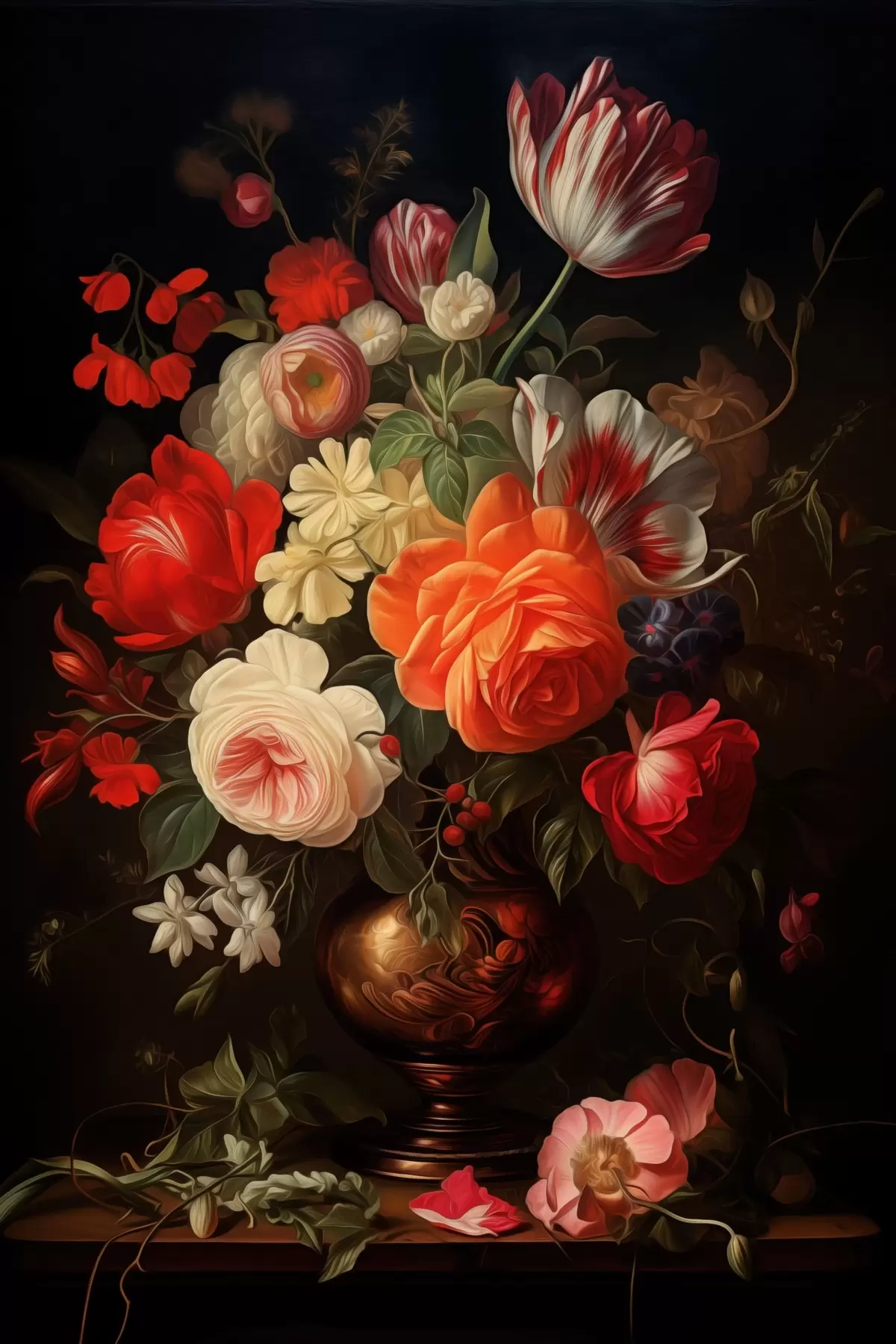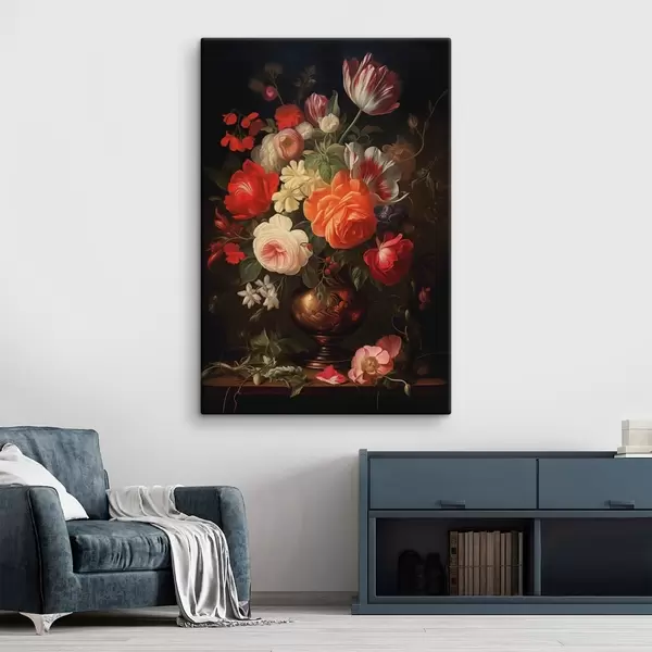 murales Ramo de flores en un jarrón sobre fondo oscuro s48351