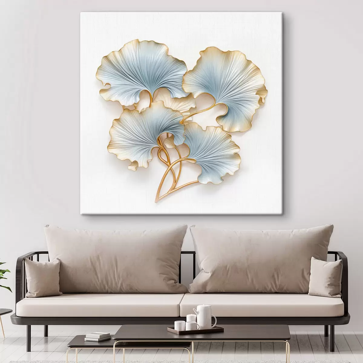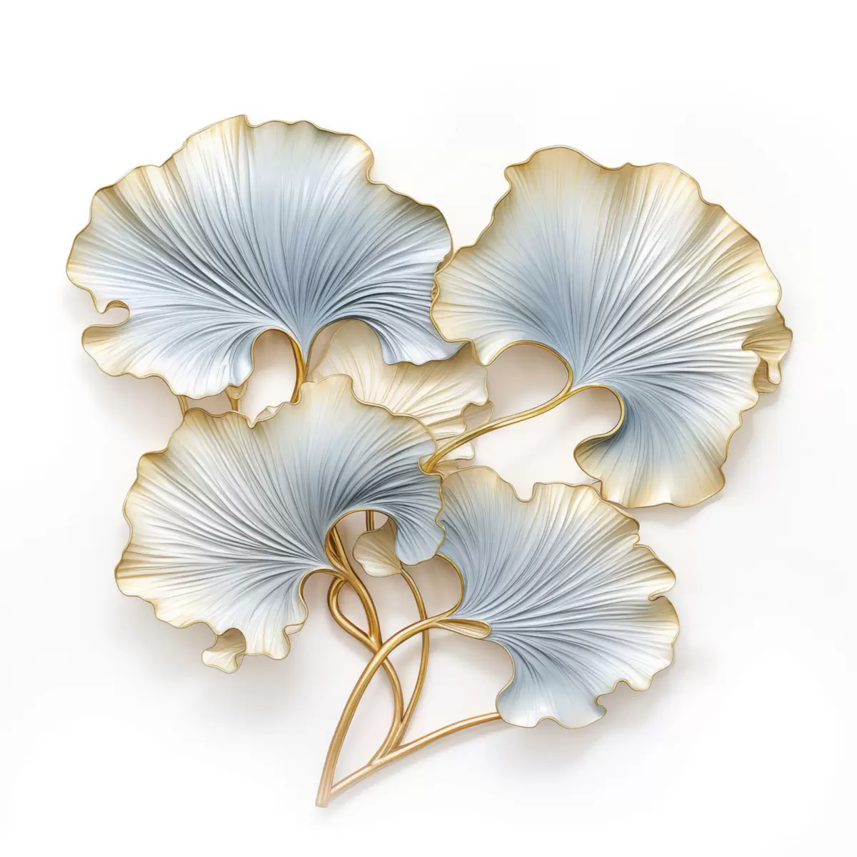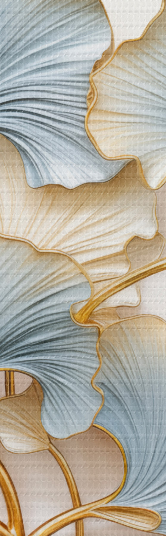 murales Hojas de ginkgo estilizadas con toques de azul y amarillo s48397