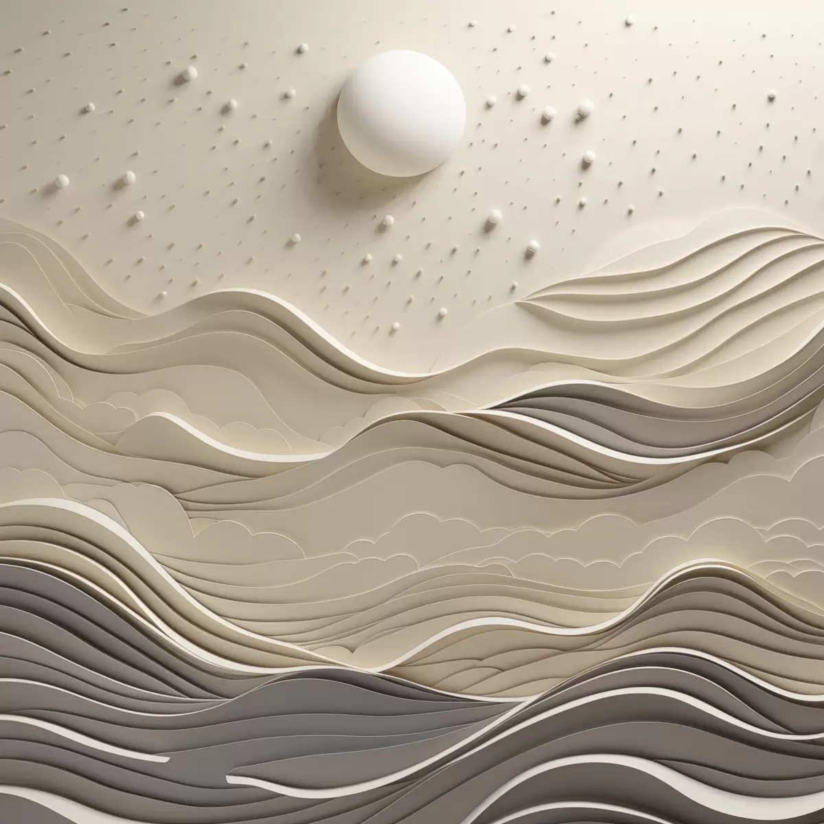 murales Un paisaje minimalista y estilizado con colinas onduladas y una gran luna en un cielo estrellado; arte abstracto s48402