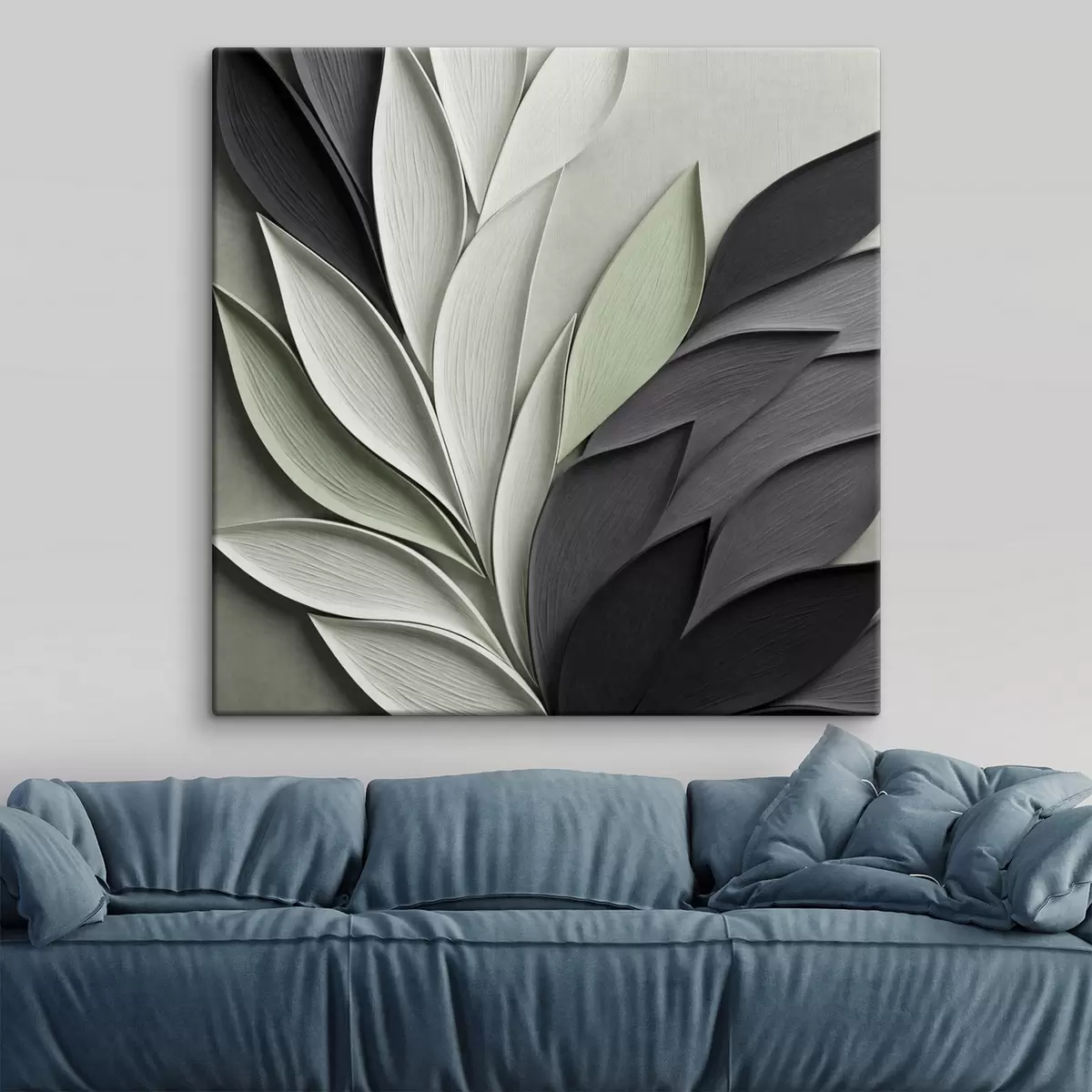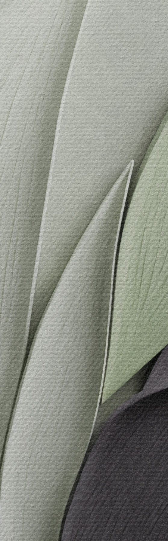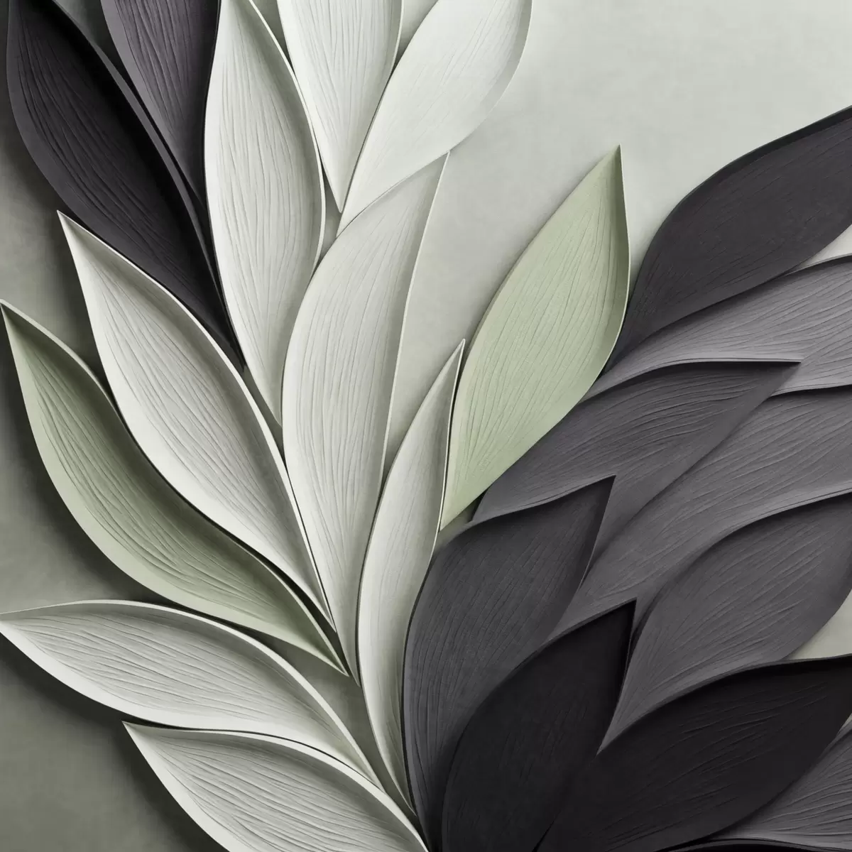 murales Hojas estilizadas y abstractas en tonos grises, blancos y verdes apagados s48411