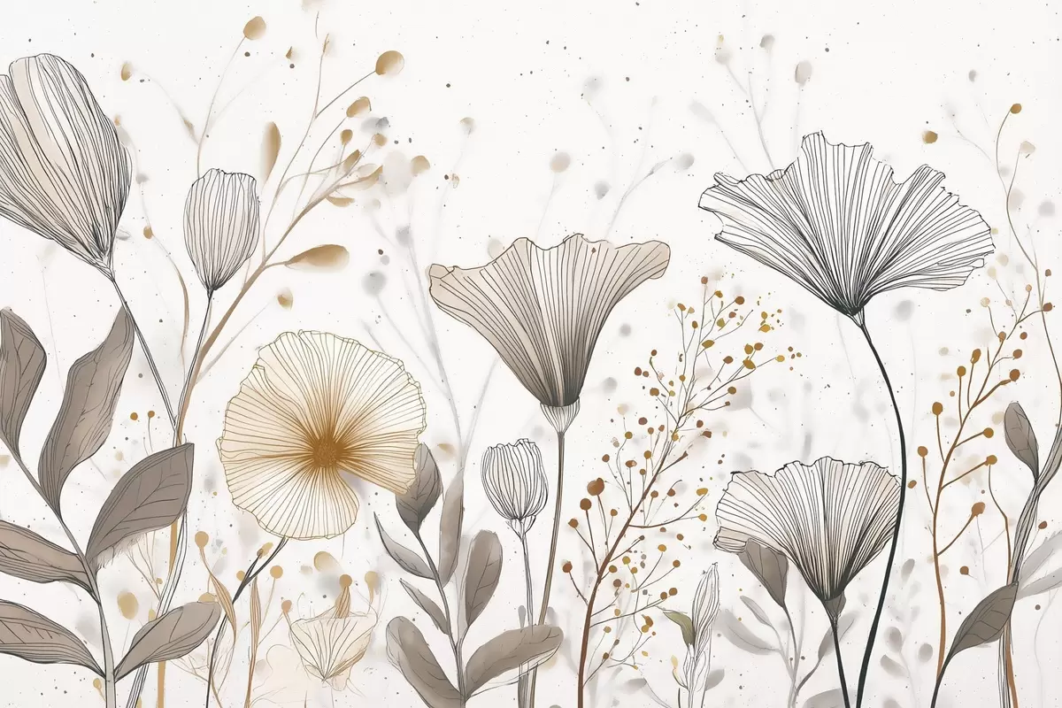 murales Flores y hierbas estilizadas, minimalismo s48484