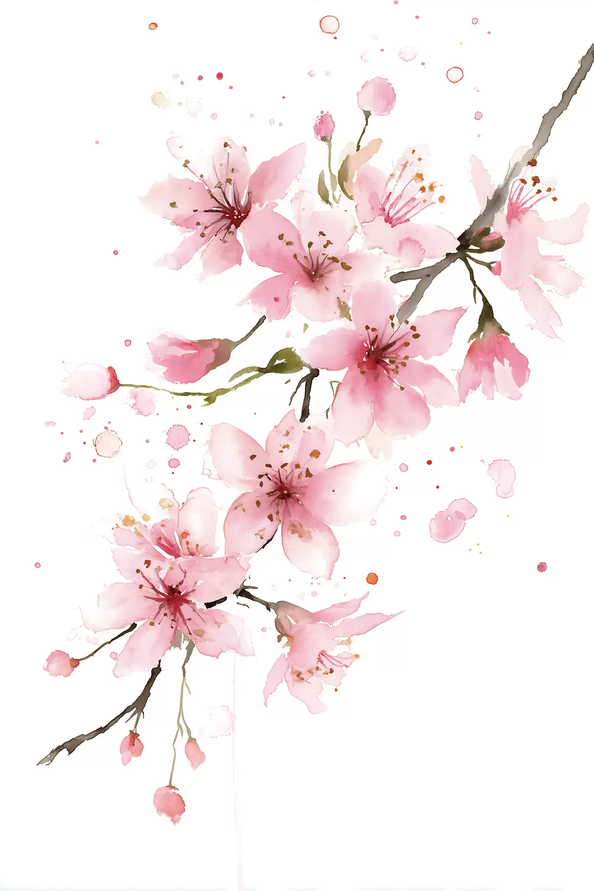 murales una rama de albaricoquero en flor pintada al estilo de la acuarela s48522