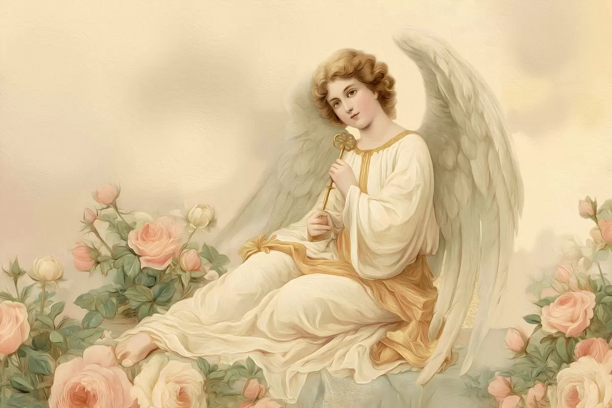 murales un ángel entre flores, al estilo de un óleo s48554