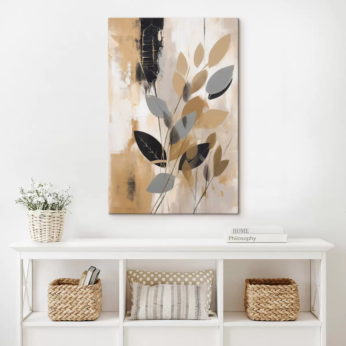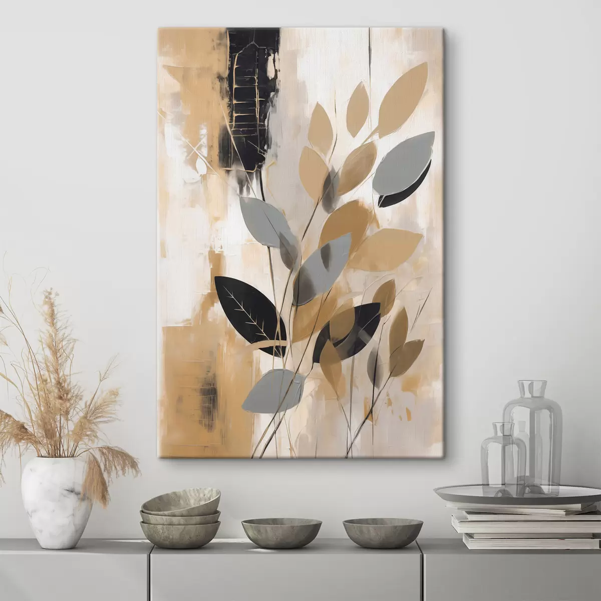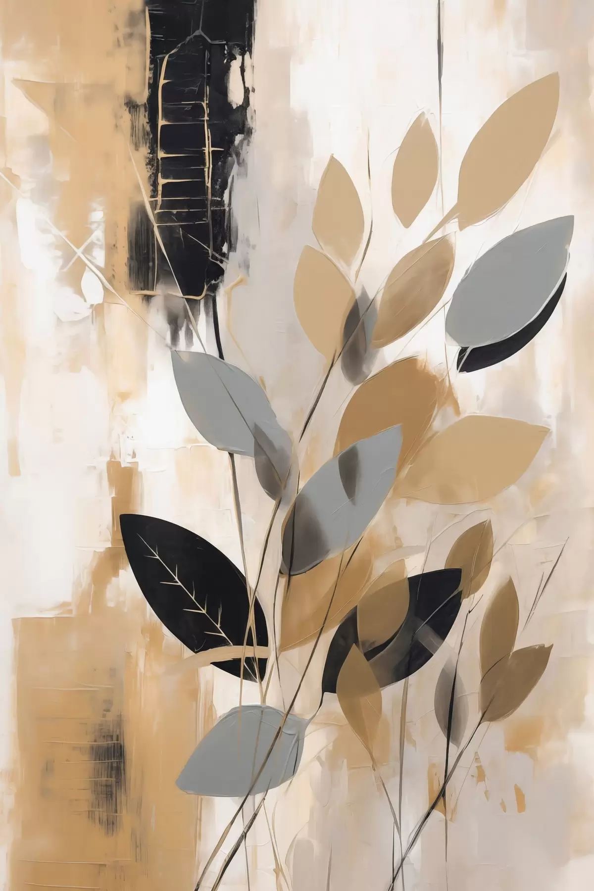 murales Una abstracción con una rama de hojas s48609