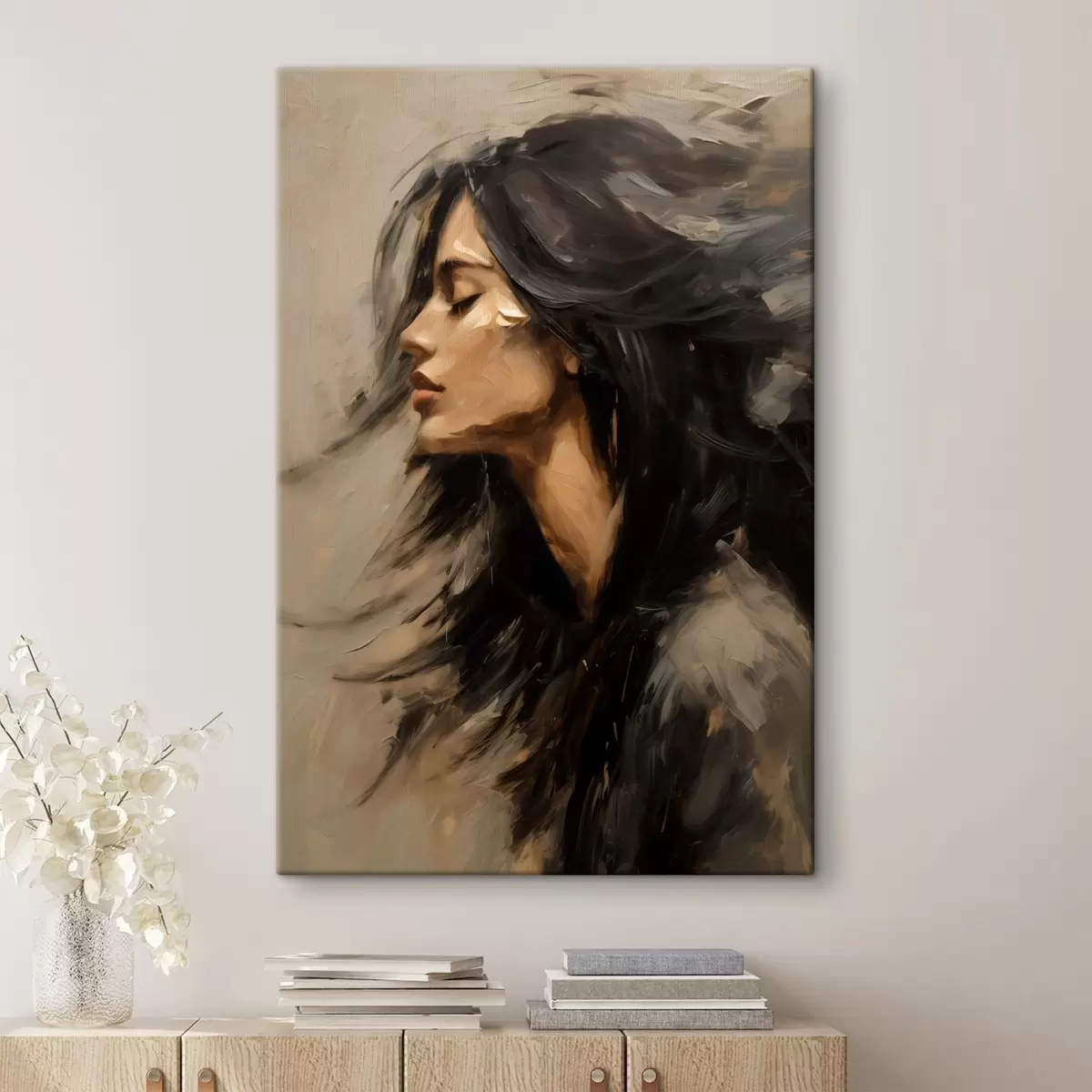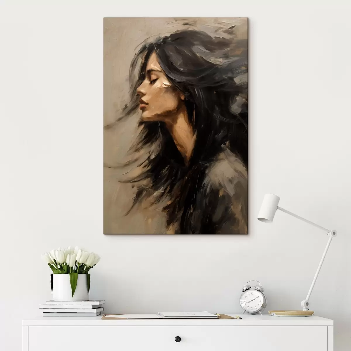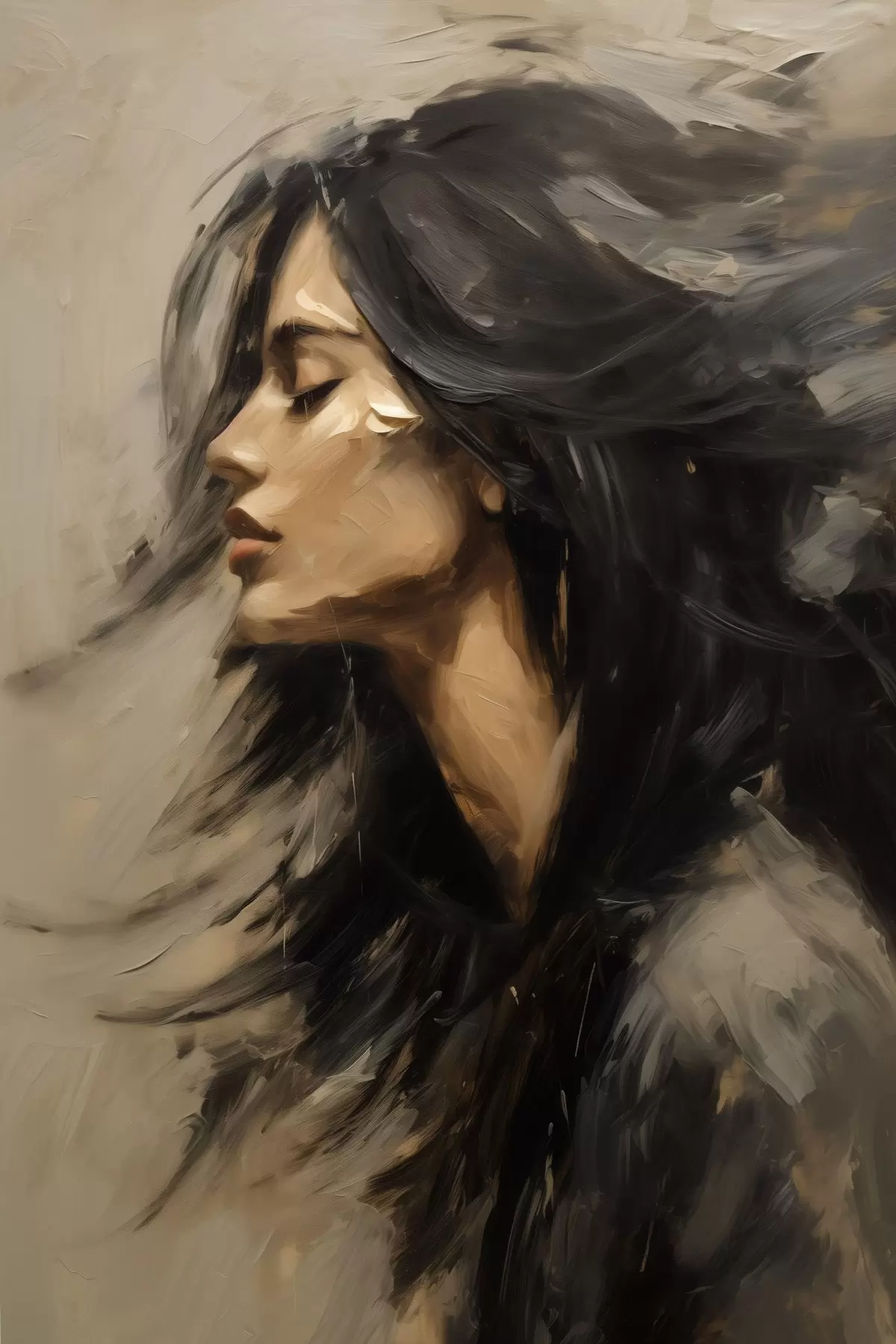 murales Retrato de una mujer con el cabello suelto, en estilo pictórico s48622