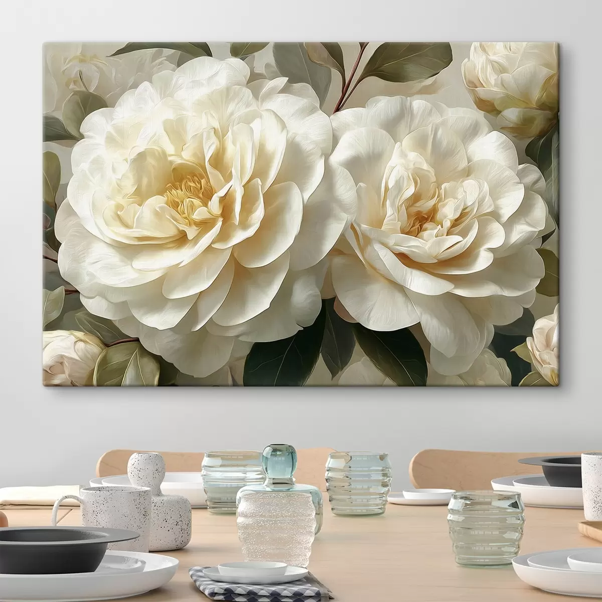 Hay tres tipos de material disponibles para pedidos: Lienzo Económico - material denso y duradero para impresión digital, idéntico al lienzo de pintor, superficie impermeable, reproducción realista de los detalles, material de grano medio. Lienzo Premium - la textura se asemeja a la de un lienzo de pintor (pequeños hilos entrelazados). Reproducción suave y detallada de la imagen sobre una superficie mate. Eco-Premium - tejido 100% algodón de alta calidad. Gracias a las fibras naturales de algodón, el material es duradero y resistente al desgaste. Excelente reproducción del color y el detalle.