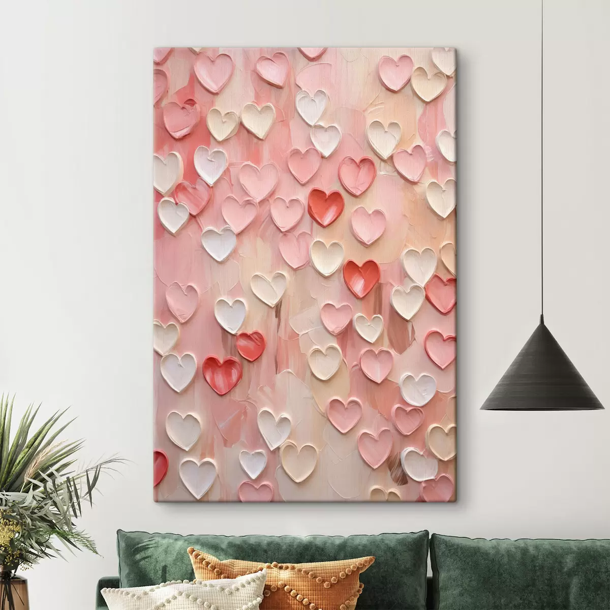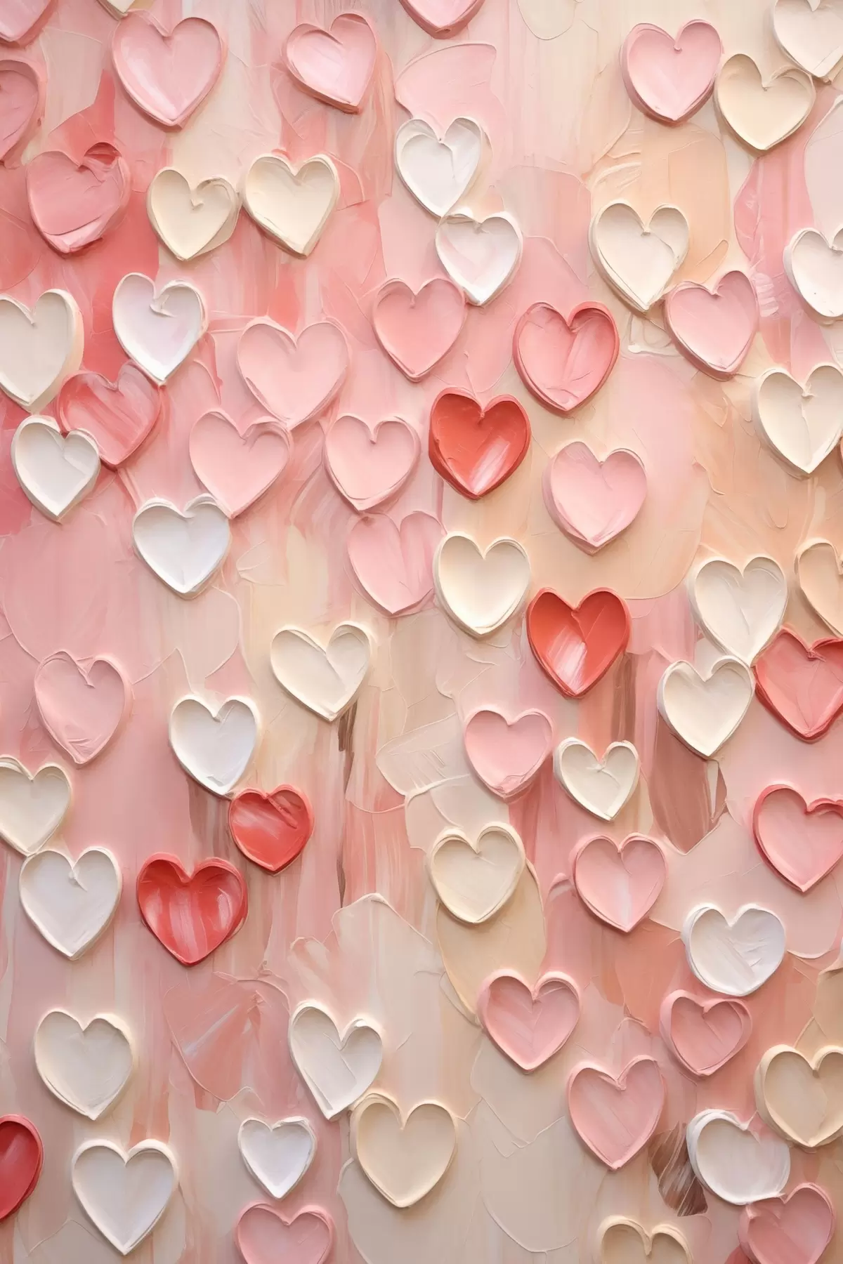 murales Corazones en distintos tonos de melocotón y rosa, con un estilo texturizado y pintado s48752