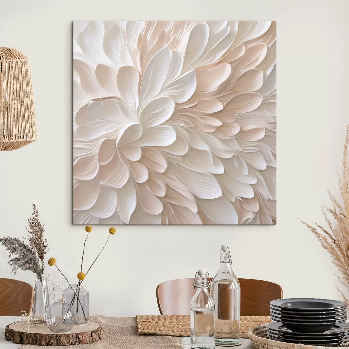 Hay tres tipos de material disponibles para pedidos: Lienzo Económico - material denso y duradero para impresión digital, idéntico al lienzo de pintor, superficie impermeable, reproducción realista de los detalles, material de grano medio. Lienzo Premium - la textura se asemeja a la de un lienzo de pintor (pequeños hilos entrelazados). Reproducción suave y detallada de la imagen sobre una superficie mate. Eco-Premium - tejido 100% algodón de alta calidad. Gracias a las fibras naturales de algodón, el material es duradero y resistente al desgaste. Excelente reproducción del color y el detalle.