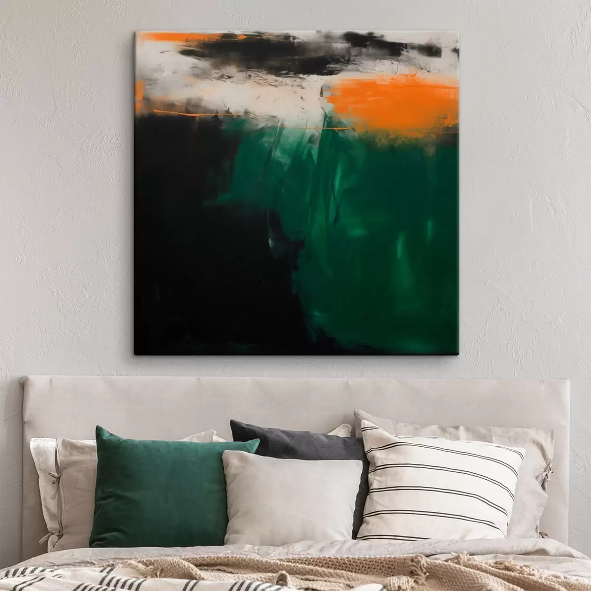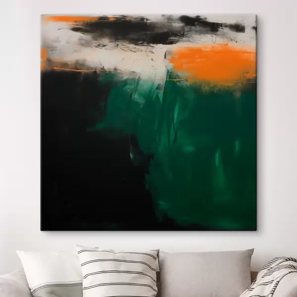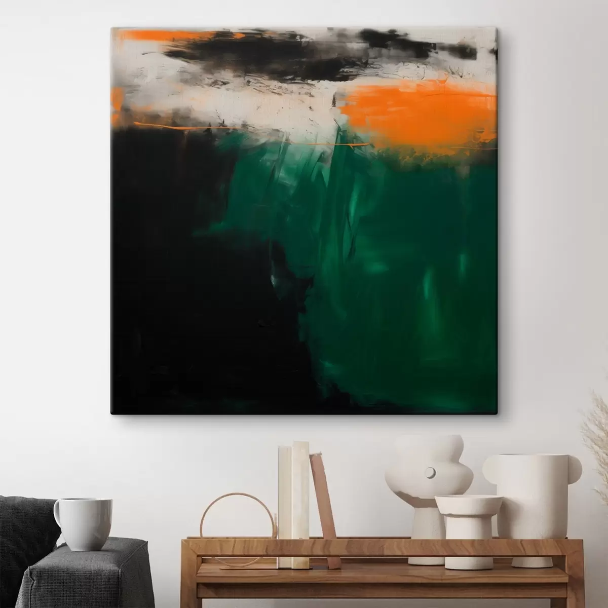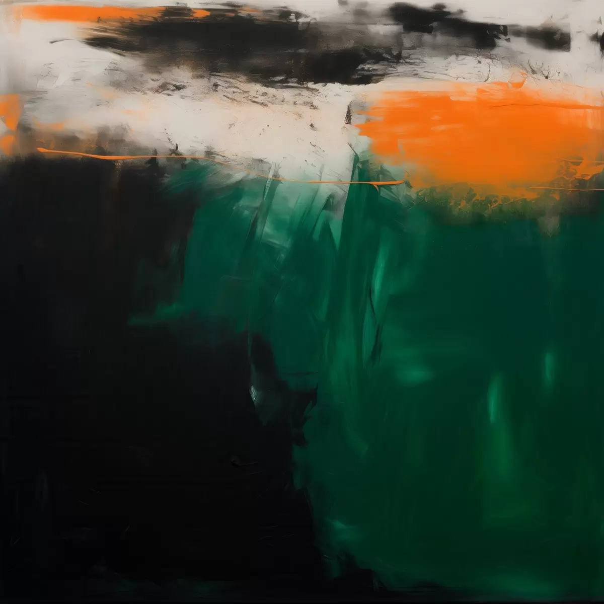 murales Una obra abstracta con toques anaranjados y pinceladas de color verde intenso, en un estilo pictórico contemporáneo s48865