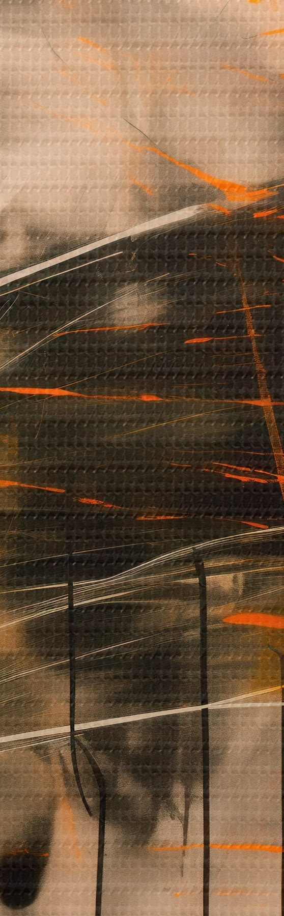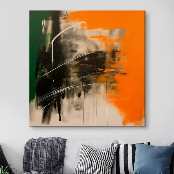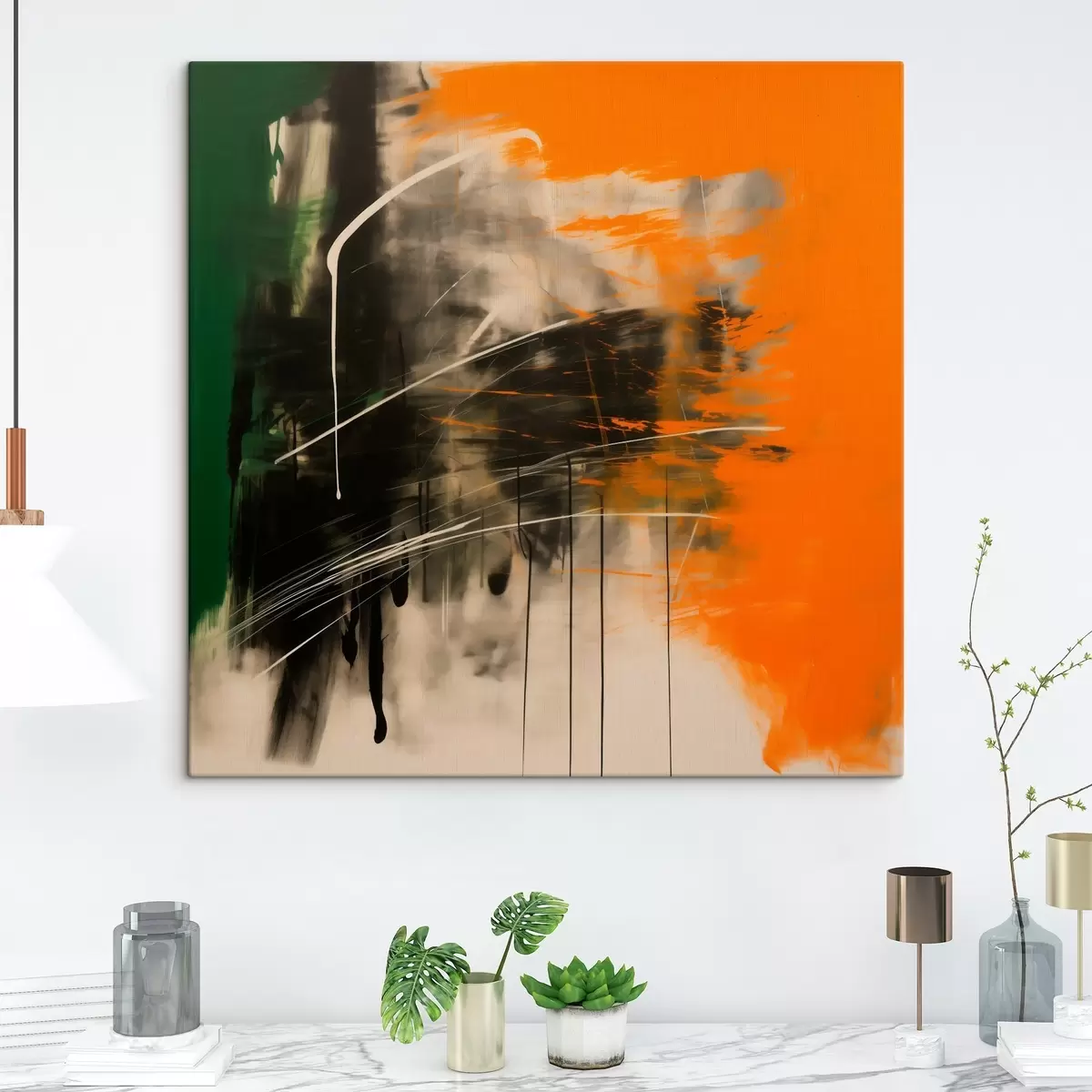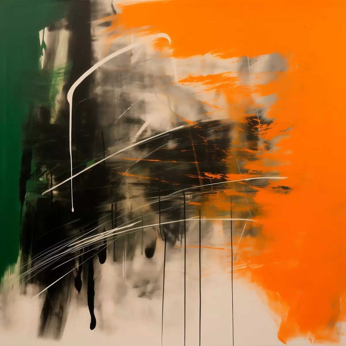 murales Abstracción con pinceladas naranjas y verdes en un estilo pictórico contemporáneo s48866
