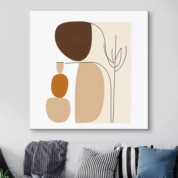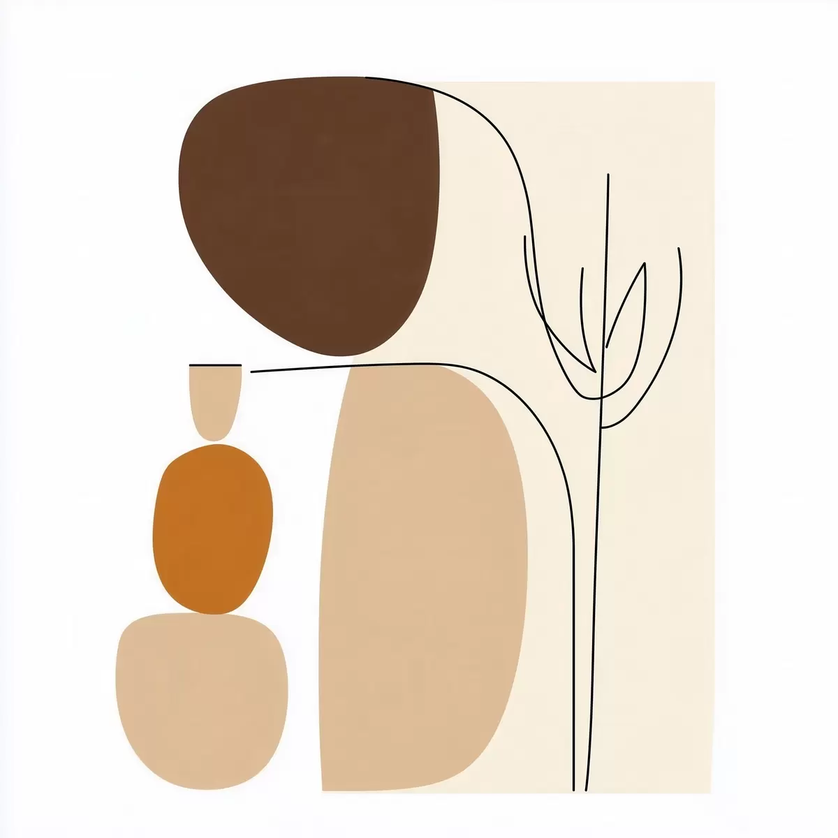 murales Composición abstracta con tallos delgados y formas sencillas en un estilo minimalista s48871