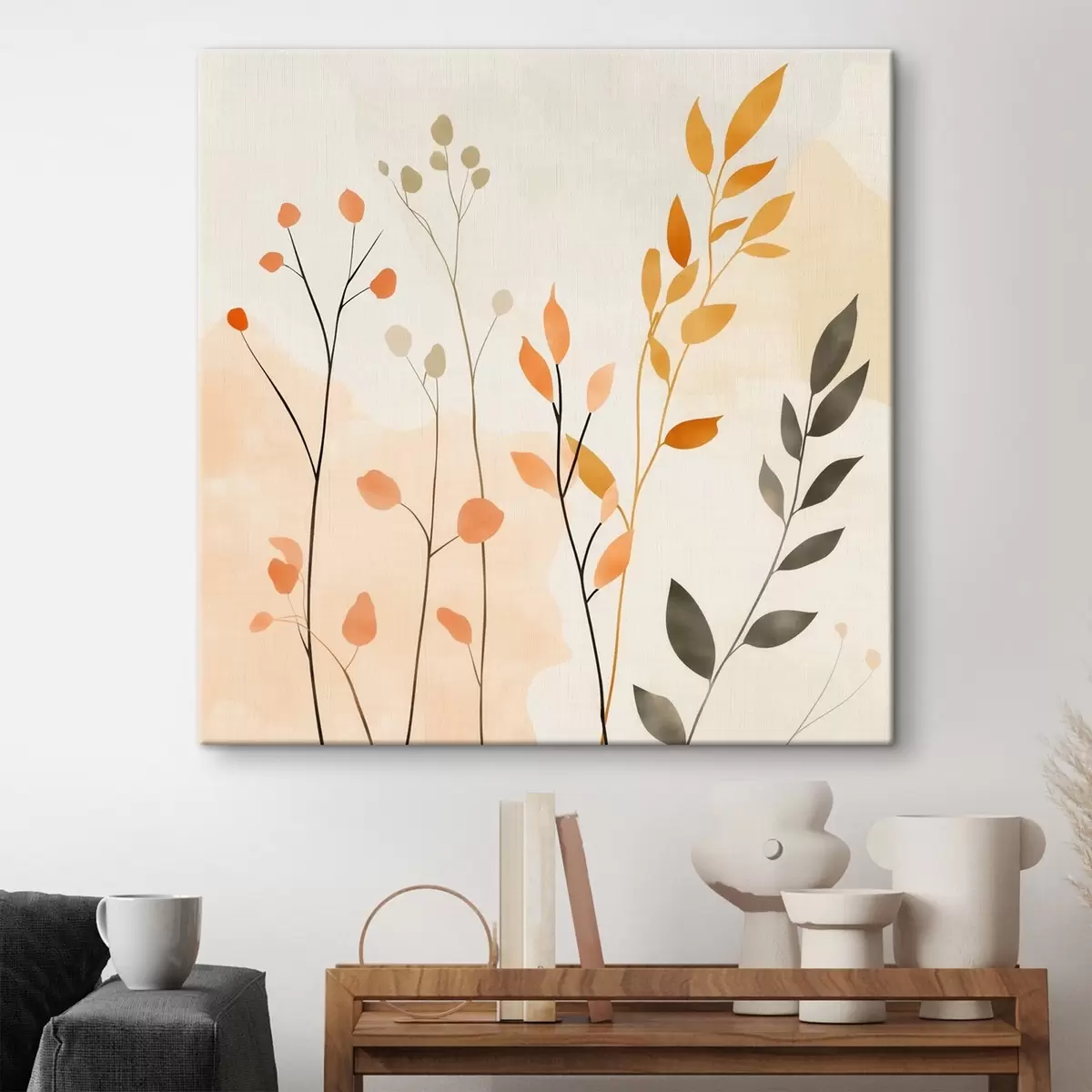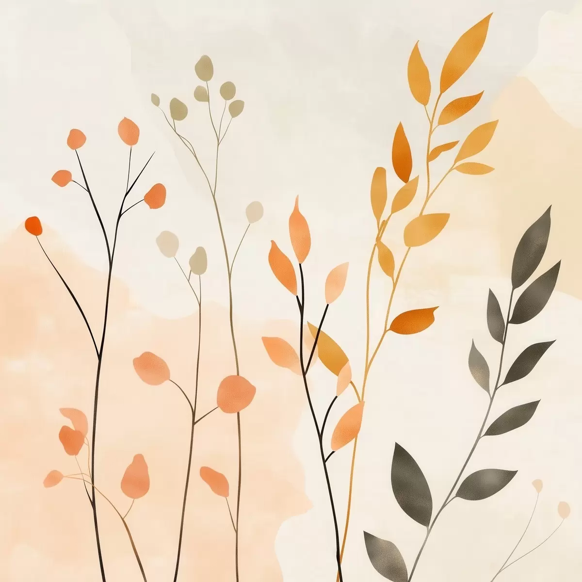 murales Composición al pastel con delicado follaje en un estilo pictórico contemporáneo s48873