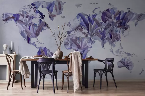 Papel de pared Un mapamundi morado hecho con hojas de plátano Nr. c00007v1